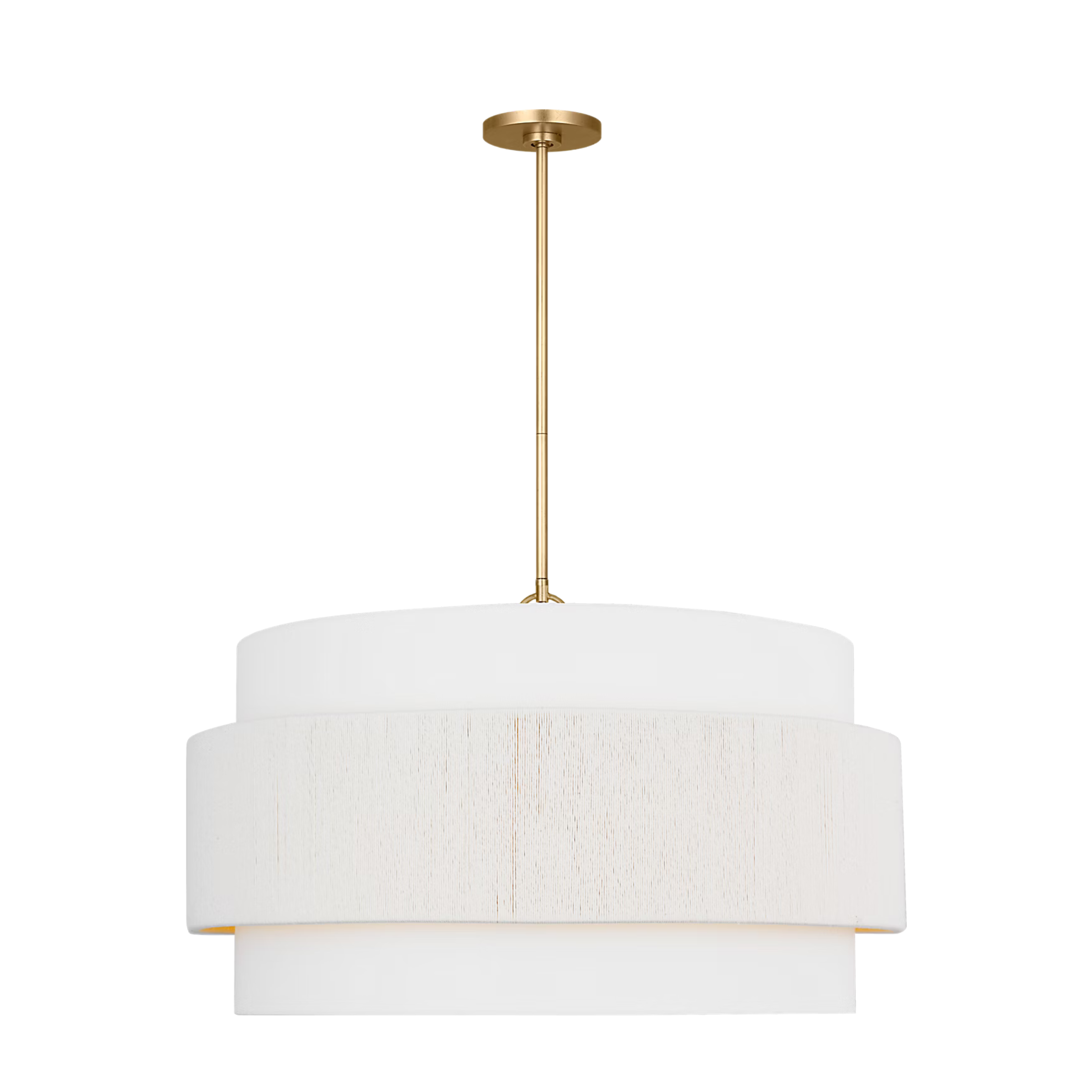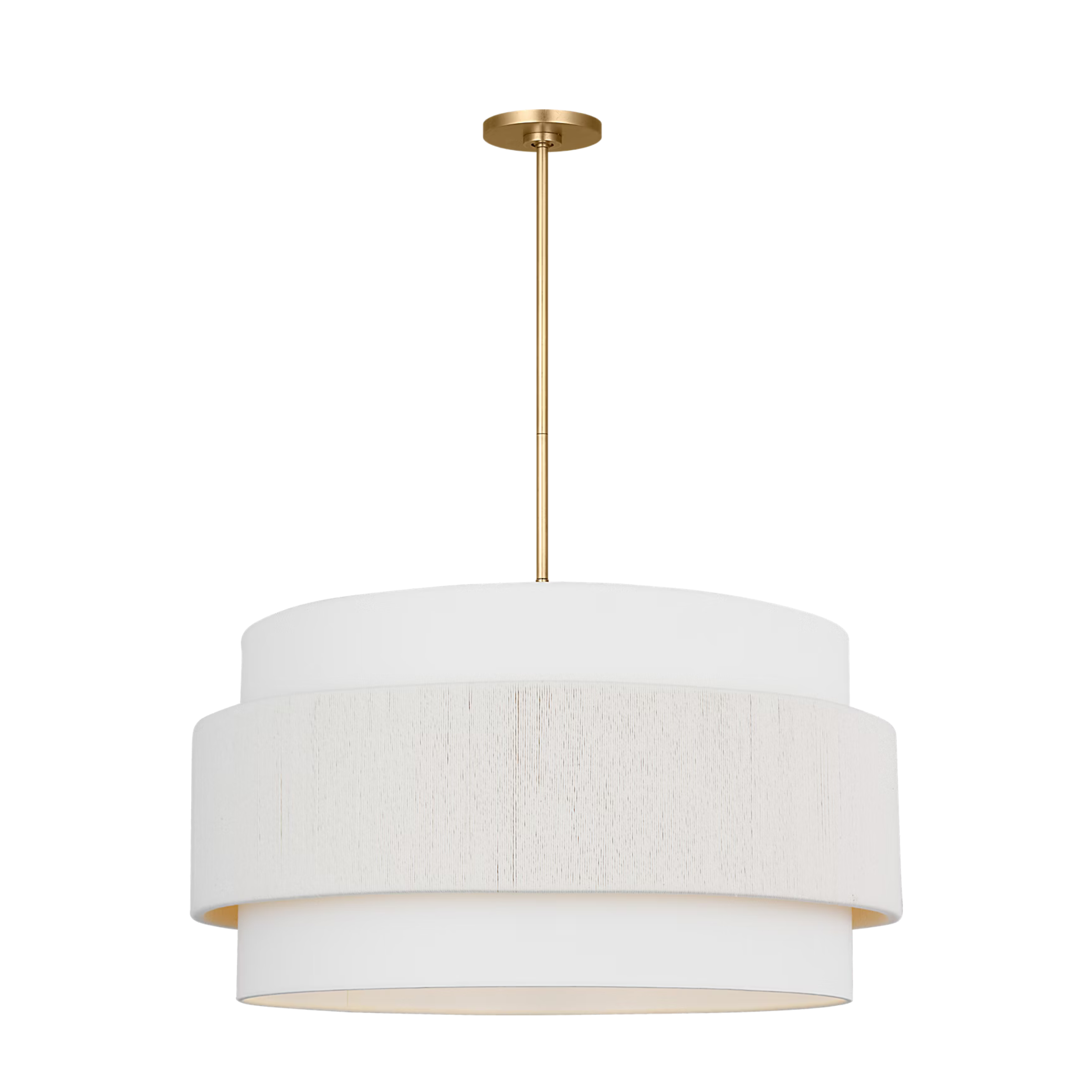 The Belaro 30" Hanging Shade by Ellen DeGeneres expands the collection’s tactile sophistication into a larger, more commanding form. Defined by its modern silhouette, soft sculpted materials, and the interplay of fabric wrap and linen drum shade, this fixture embodies DeGeneres’ approach to design—organic, refined, and unmistakably modern. The 30" profile is ideal for living rooms, dining rooms, foyers, and primary bedrooms, where its graceful proportions and layered textures create a focal point that is both inviting and architecturally elegant.