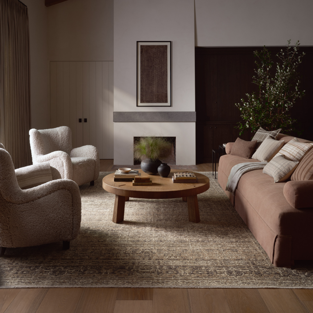 The Molly Collection by Amber Lewis x Loloi is made with a unique fabrication that creates an almost identical replica of a vintage, handmade rug with a low, textured pile and nuanced tones. Molly is power-loomed of polypropylene and polyester in Egypt, a durable, easy-to-clean area rug for living rooms, bedrooms, and more. This collection is also OEKO-TEX certified, ensuring its materials do not contain harmful substances. Similar to a vintage rug, some of its threads may naturally come loose, and if that happens, simply trim the thread with scissors.
