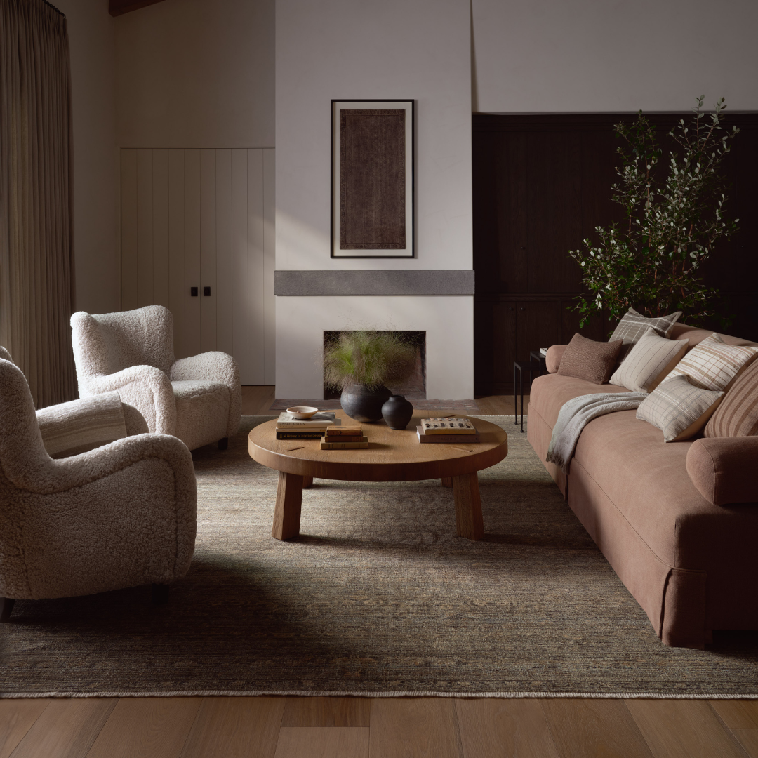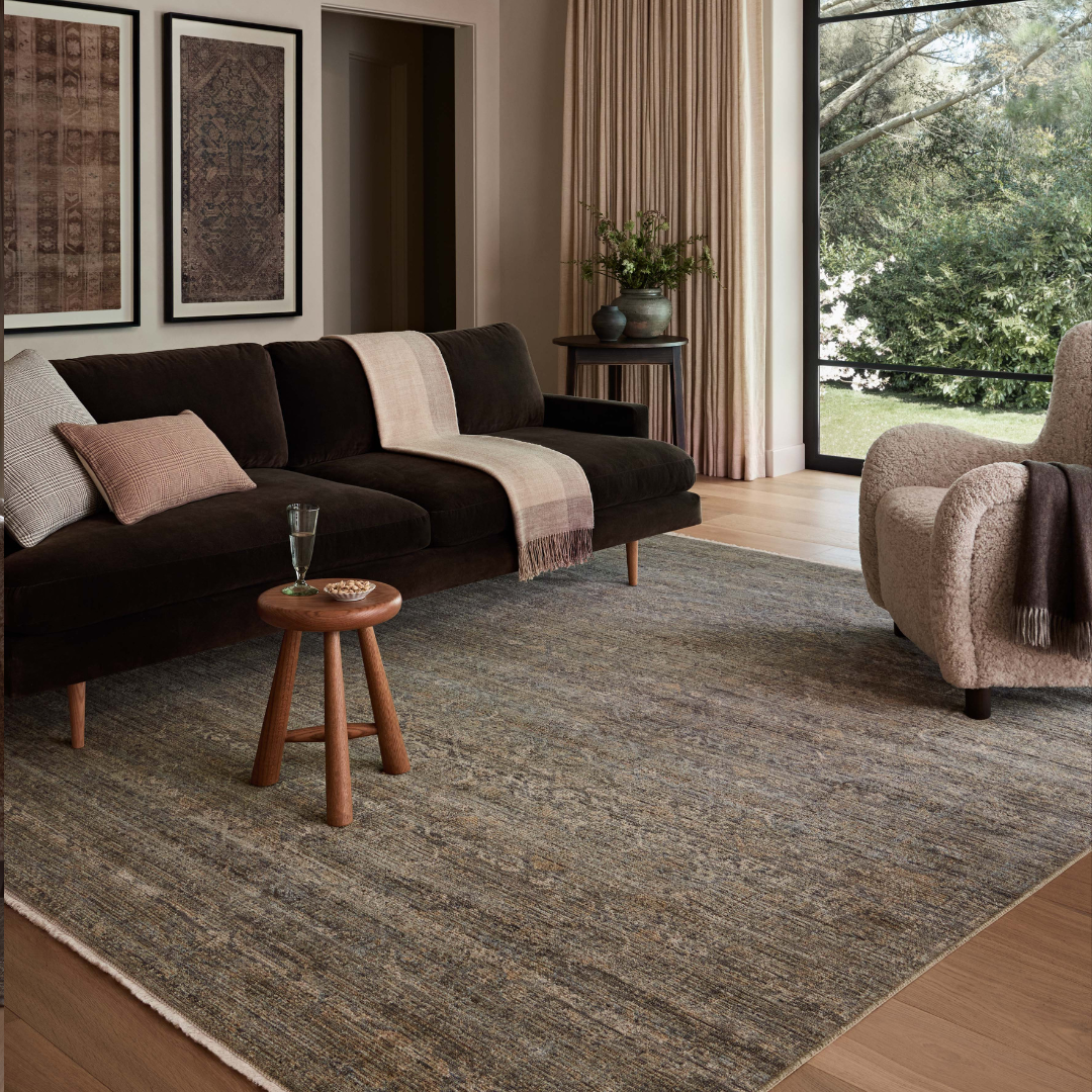 The Molly Collection by Amber Lewis x Loloi is made with a unique fabrication that creates an almost identical replica of a vintage, handmade rug with a low, textured pile and nuanced tones. Molly is power-loomed of polypropylene and polyester in Egypt, a durable, easy-to-clean area rug for living rooms, bedrooms, and more. This collection is also OEKO-TEX certified, ensuring its materials do not contain harmful substances. Similar to a vintage rug, some of its threads may naturally come loose, and if that happens, simply trim the thread with scissors.