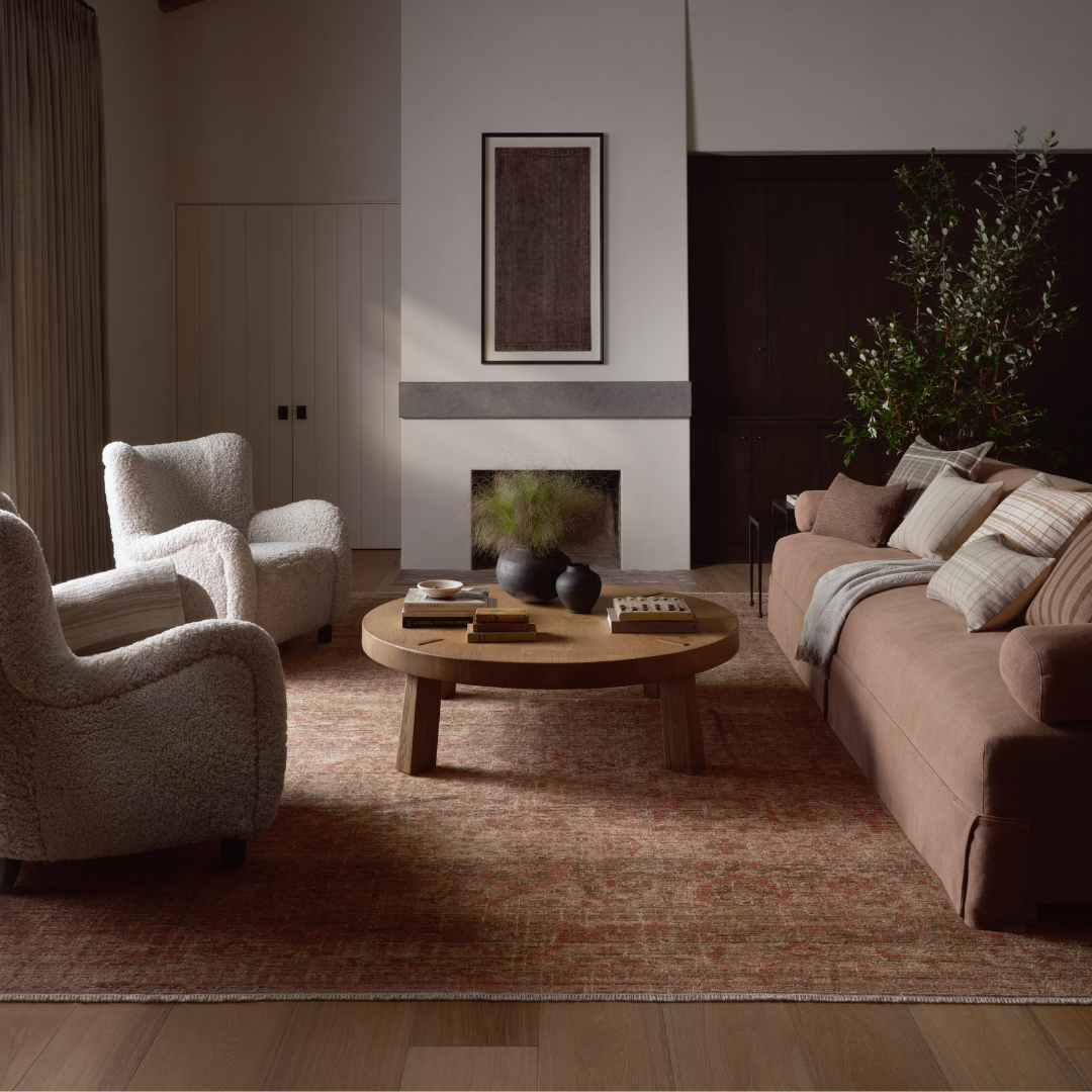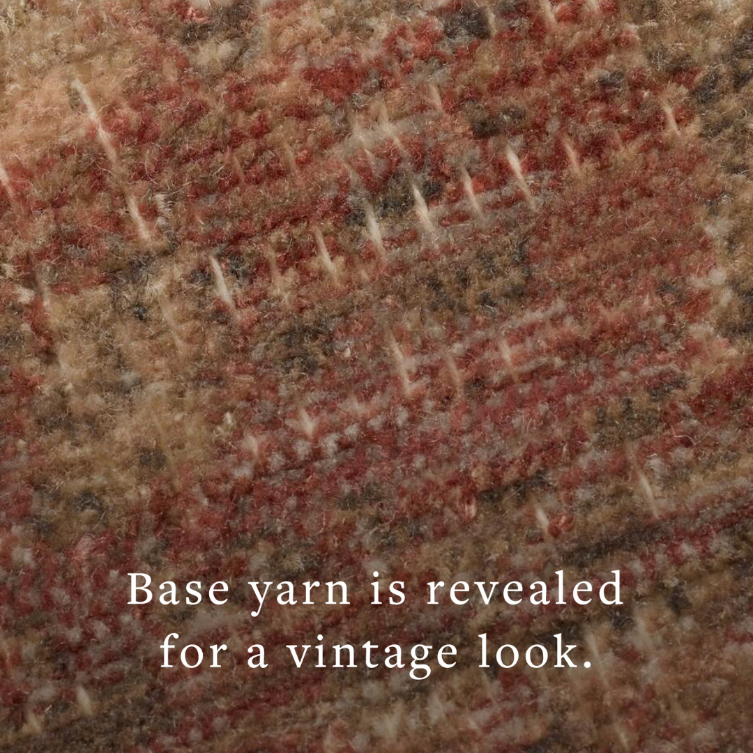 The Molly Collection by Amber Lewis x Loloi is made with a unique fabrication that creates an almost identical replica of a vintage, handmade rug with a low, textured pile and nuanced tones. Molly is power-loomed of polypropylene and polyester in Egypt, a durable, easy-to-clean area rug for living rooms, bedrooms, and more. This collection is also OEKO-TEX certified, ensuring its materials do not contain harmful substances. Similar to a vintage rug, some of its threads may naturally come loose, and if that happens, simply trim the thread with scissors.