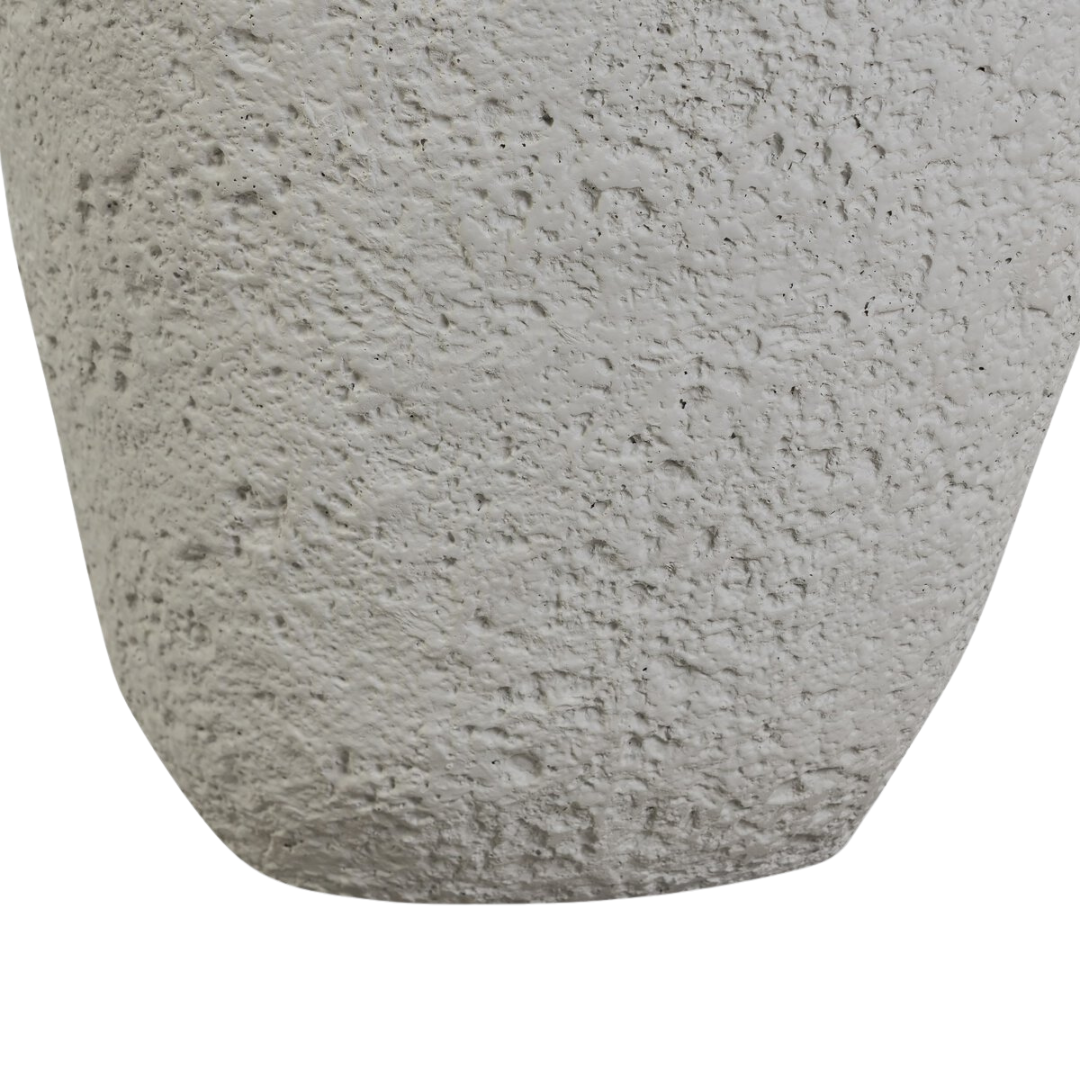 Organic shaping and rough textured sides play with the contrast of a smooth top, bringing interest to this outdoor end table. Cover or store indoors during inclement weather and when not in use.