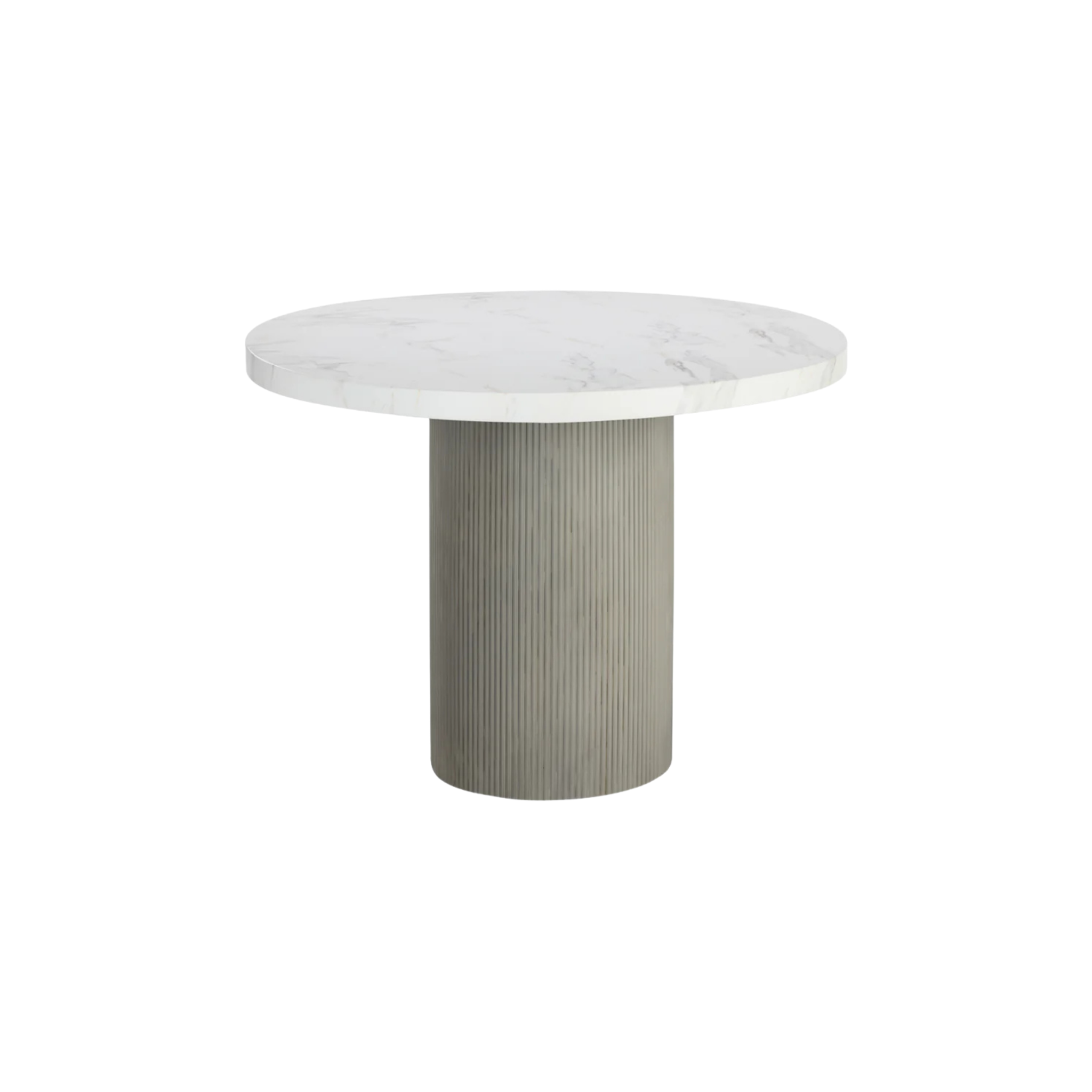 A round, contemporary 40" dining table. The Nash Outdoor Dining Table features a clean and refined design. Features a stylish fluted table base. Apply protective covers or store indoors when not in use and during inclement weather to prolong the life of outdoor furniture.