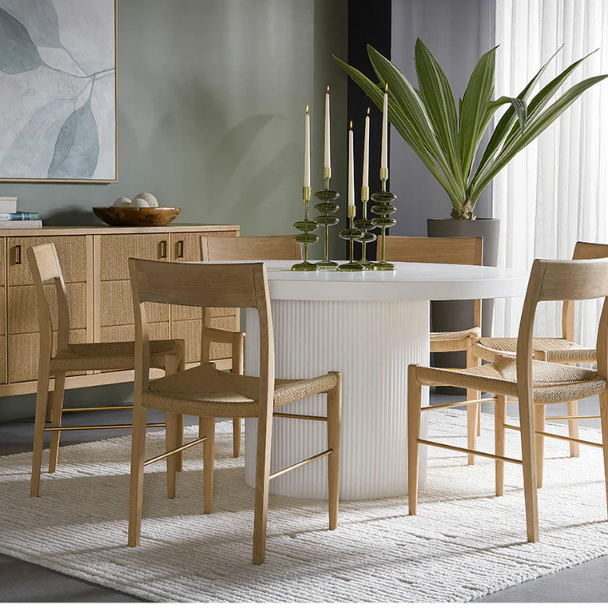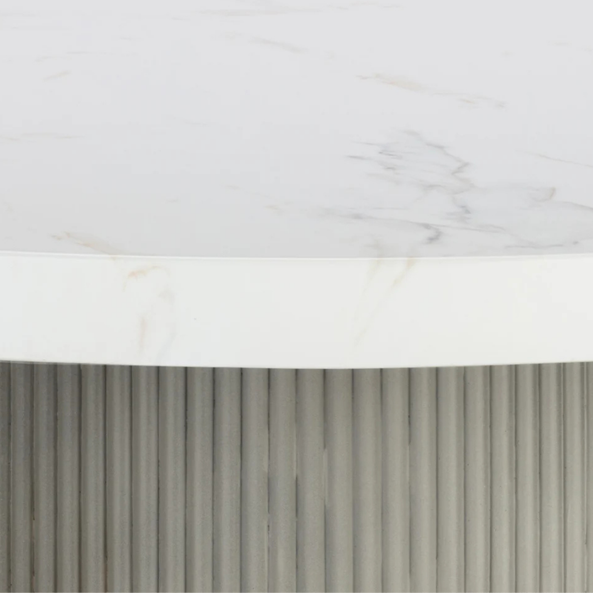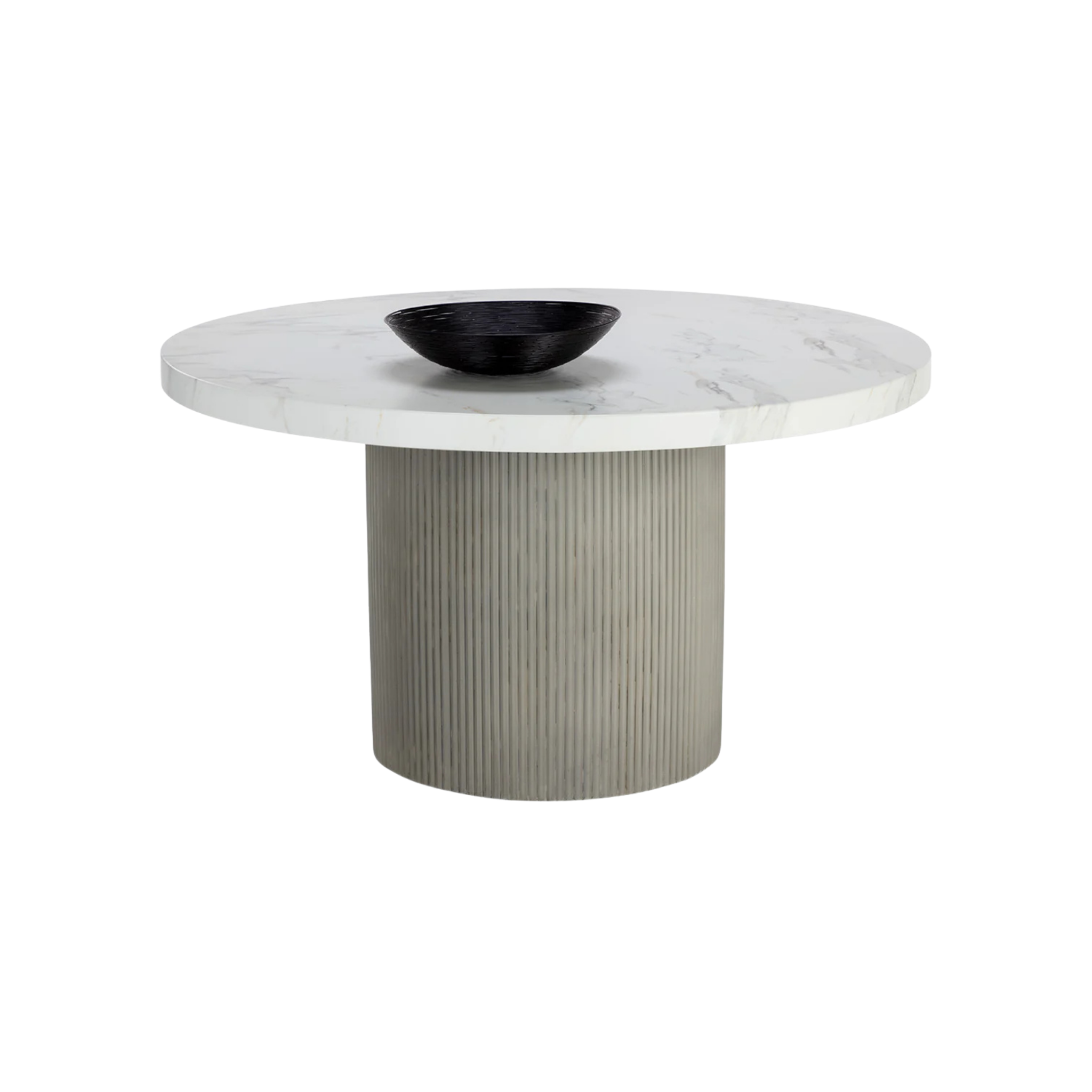 A round, contemporary 55" dining table. The Nash Outdoor Dining Table features a clean and refined design. Features a stylish fluted table base. Apply protective covers or store indoors when not in use and during inclement weather to prolong the life of outdoor furniture.