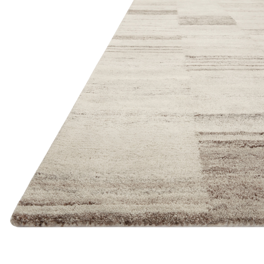 The Rocky Collection area rug by Amber Lewis x Loloi is uniquely hand-tufted with undyed wool to create a subtle and natural color contrast. With a medium pile and neutral palette, the Rocky Collection can be a refreshing foundation in living rooms, bedrooms, and dens. The rug's Moroccan-inspired design features asymmetrical geometric patterns that blend seamlessly with a range of decor styles. Made of hand-tufted wool in India and GoodWeave-certified, ensuring our commitment to ethical production and the support of weavers' communities.