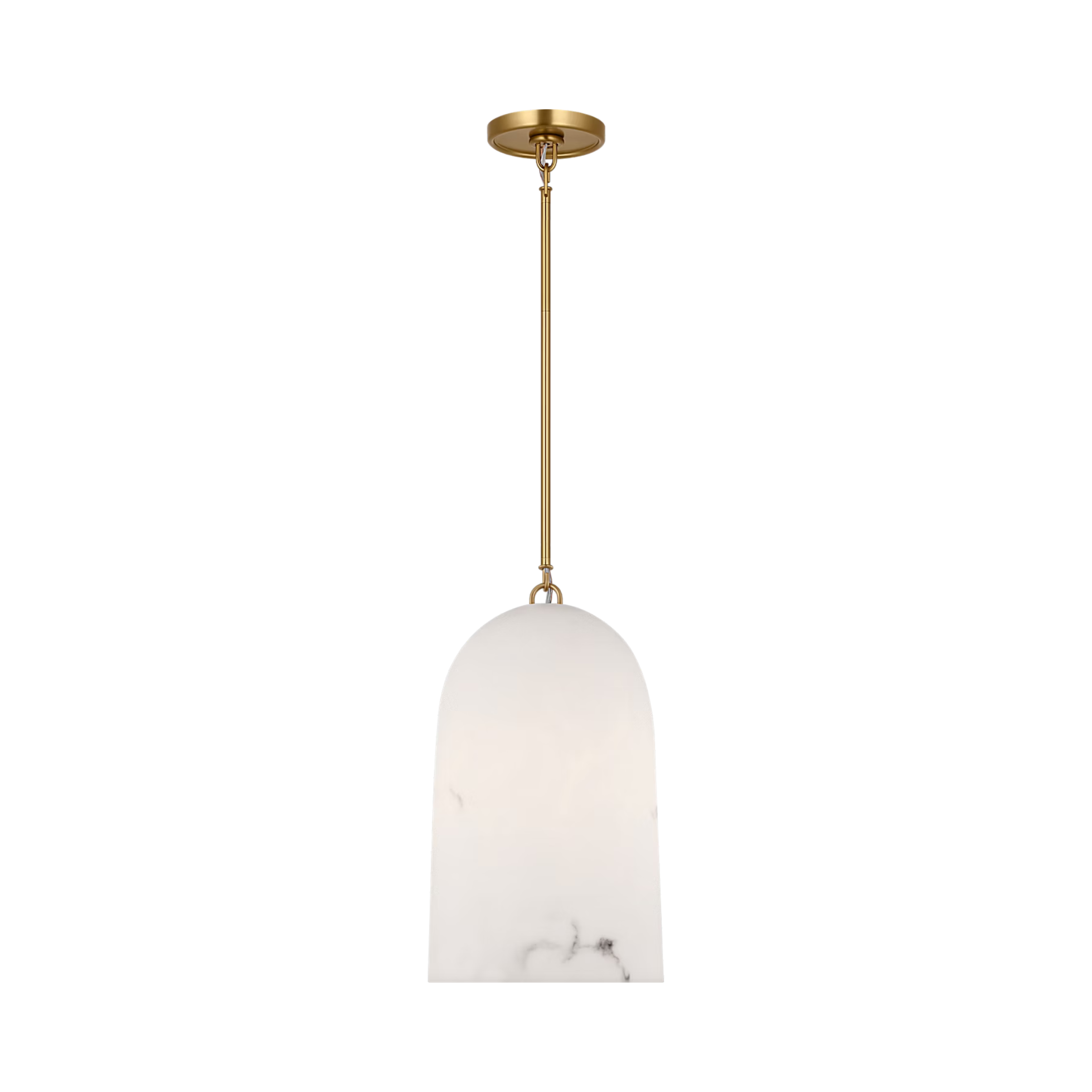 Compact and refined, the Savina 10" Pendant by Chapman & Myers distills the collection's material story into a smaller-scale fixture. Its hand-crafted mineral opaline shade features subtle veining that mimics the natural character of alabaster, creating a soft, ambient glow. The 10" pendant is supported by a minimal metal frame, making it perfect for kitchens, hallways, studies, and laundry rooms, where its understated elegance and artisanal quality add depth and texture without overwhelming the space.