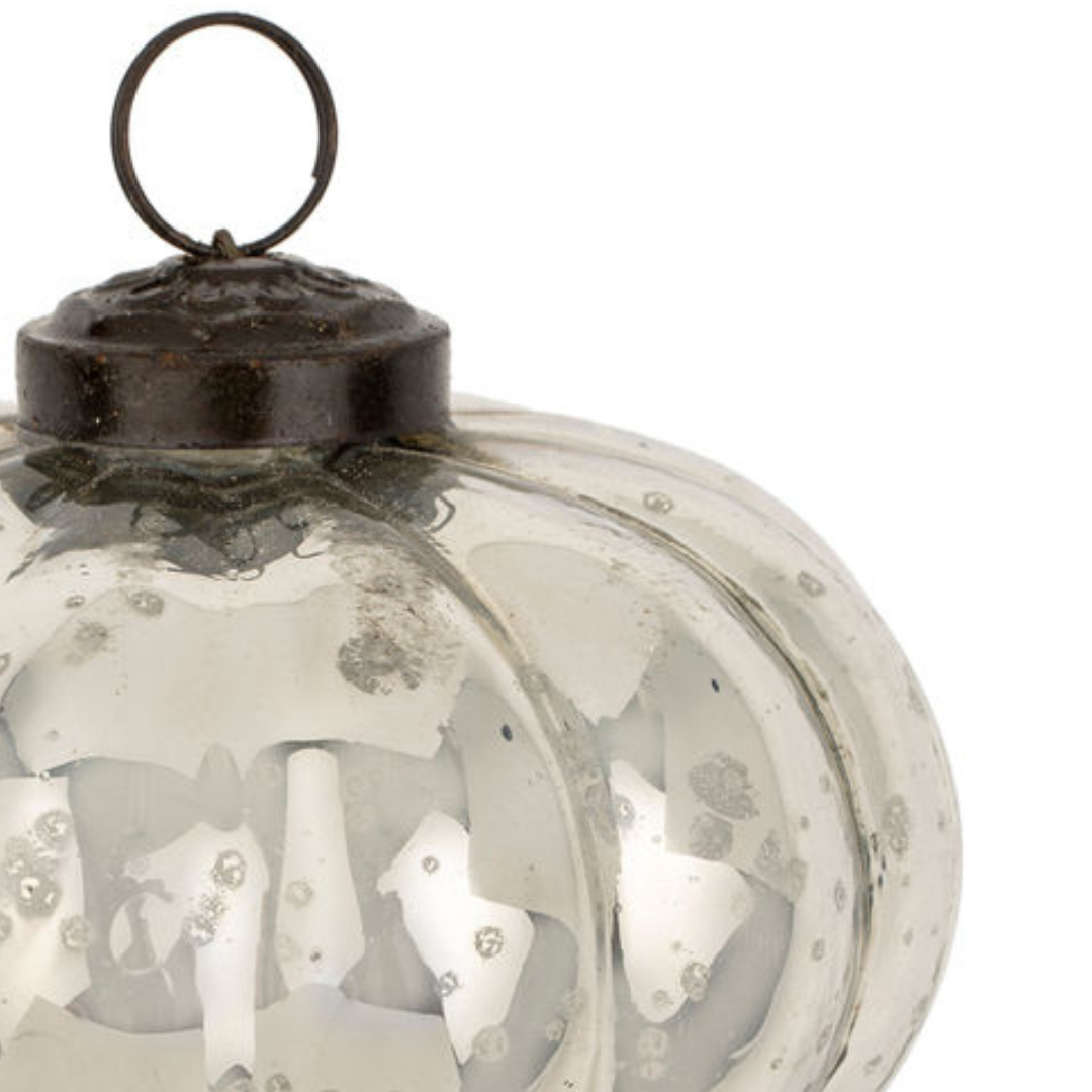Materials & Composition: Crafted from recycled glass with a lustrous silver finish, this ornament merges sustainability with timeless holiday charm.