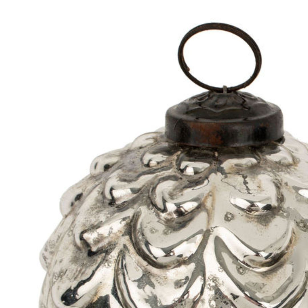 Materials & Composition: Crafted from recycled glass with a lustrous silver finish, this ornament merges sustainability with timeless holiday charm.