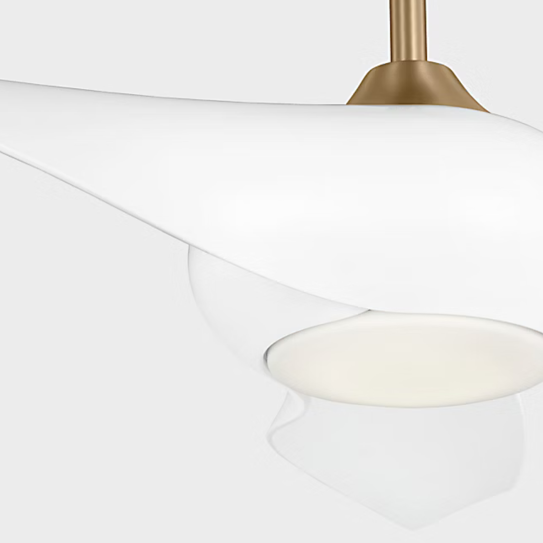 A novel take on a popular style, the Topan Smart LED fan by Sean Lavin showcases three gracefully twisted wrapped blades creating a pinwheel-liked dynamic that draws the eyes to the center. The classic metal construction and white lens LED gives a soft ambient illumination. Damp-rated for indoor or outdoor use, this app-controlled fan will create a striking statement in any space.