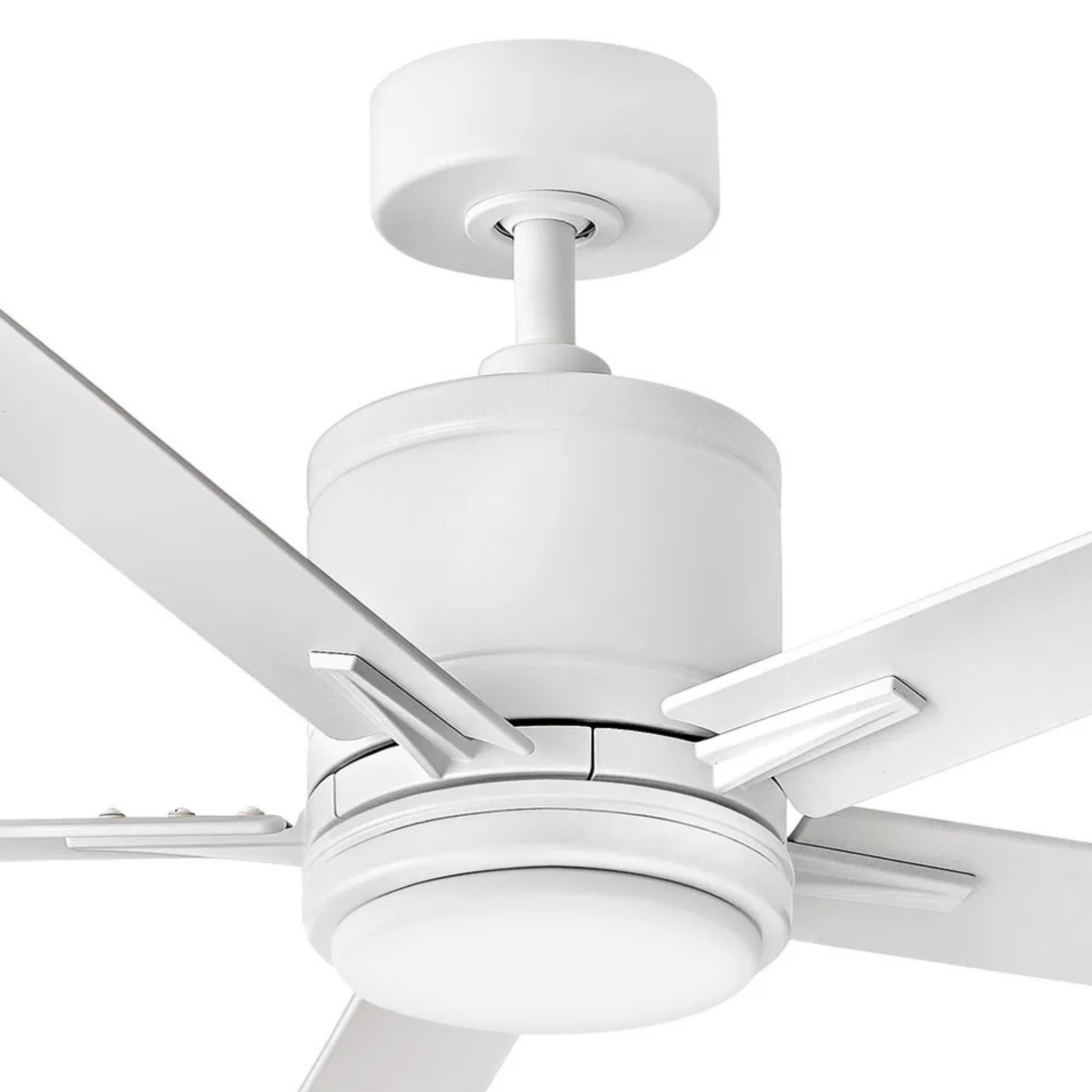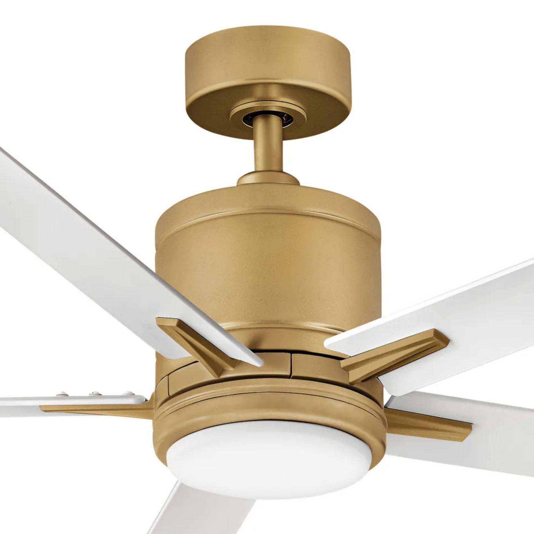 Vail offers a transitional style with gently curved blades and an array of versatile finish options, while its integrated LED and DC motor technology deliver excellent energy efficiency. Wet-rated can be used for both indoor and outdoor spaces. Available in Metallic Matte Bronze, Matte Black, Matte White, Matte White & Heritage Brass, and Brushed Nickel.