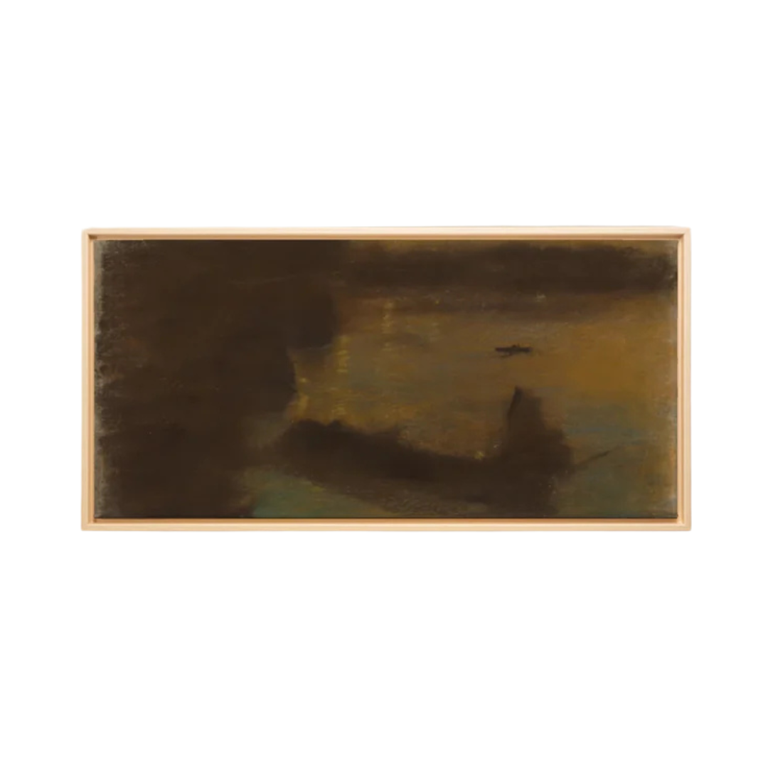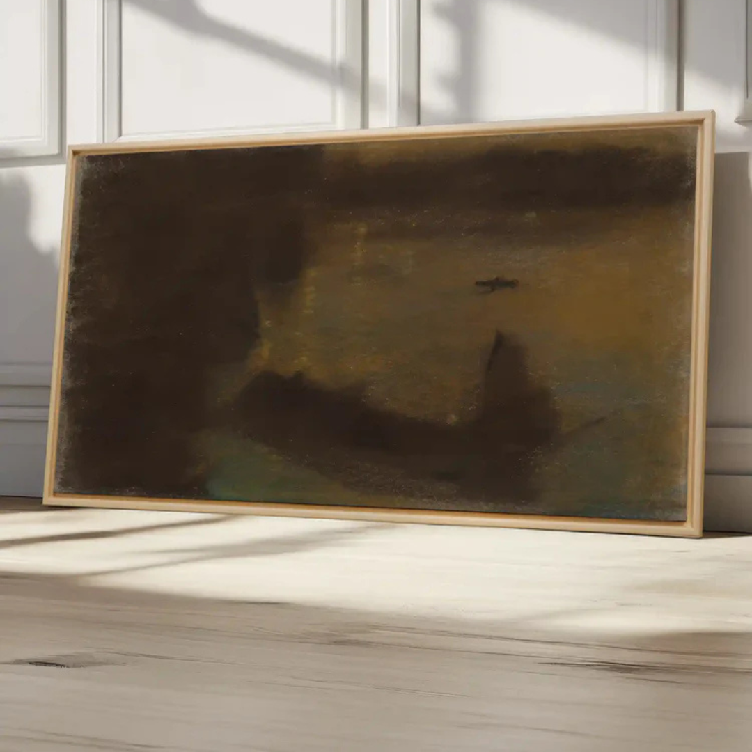 Elegant and muted, Lueur de Cendre explores light through matter. Its brown and gold shades blend together in a soft, introspective atmosphere. The work evokes the warmth of a memory or a quiet flame. Its subtle depth invites quiet contemplation. A refined creation with a discreet mid-century charm.