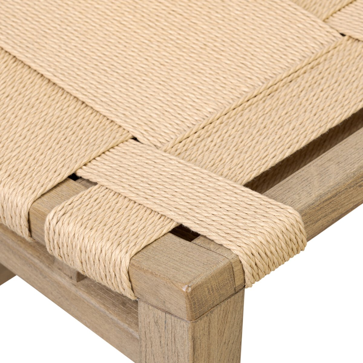 Bring balanced texture to your counter with seating in complementary materials. A light oak frame features curved, woven cord seating for a comfy sit, while an apron design resembling the weave adds definition.