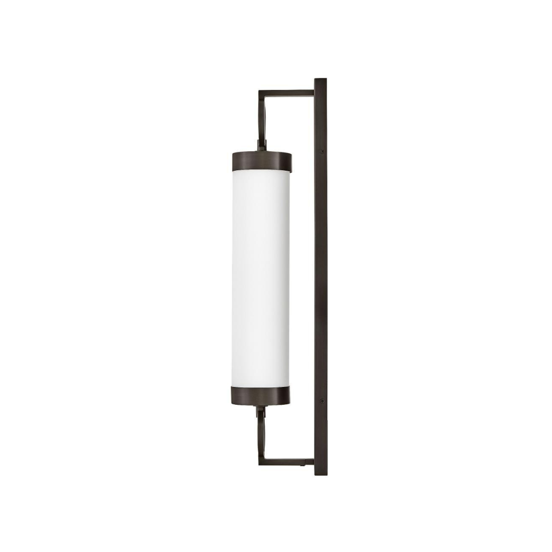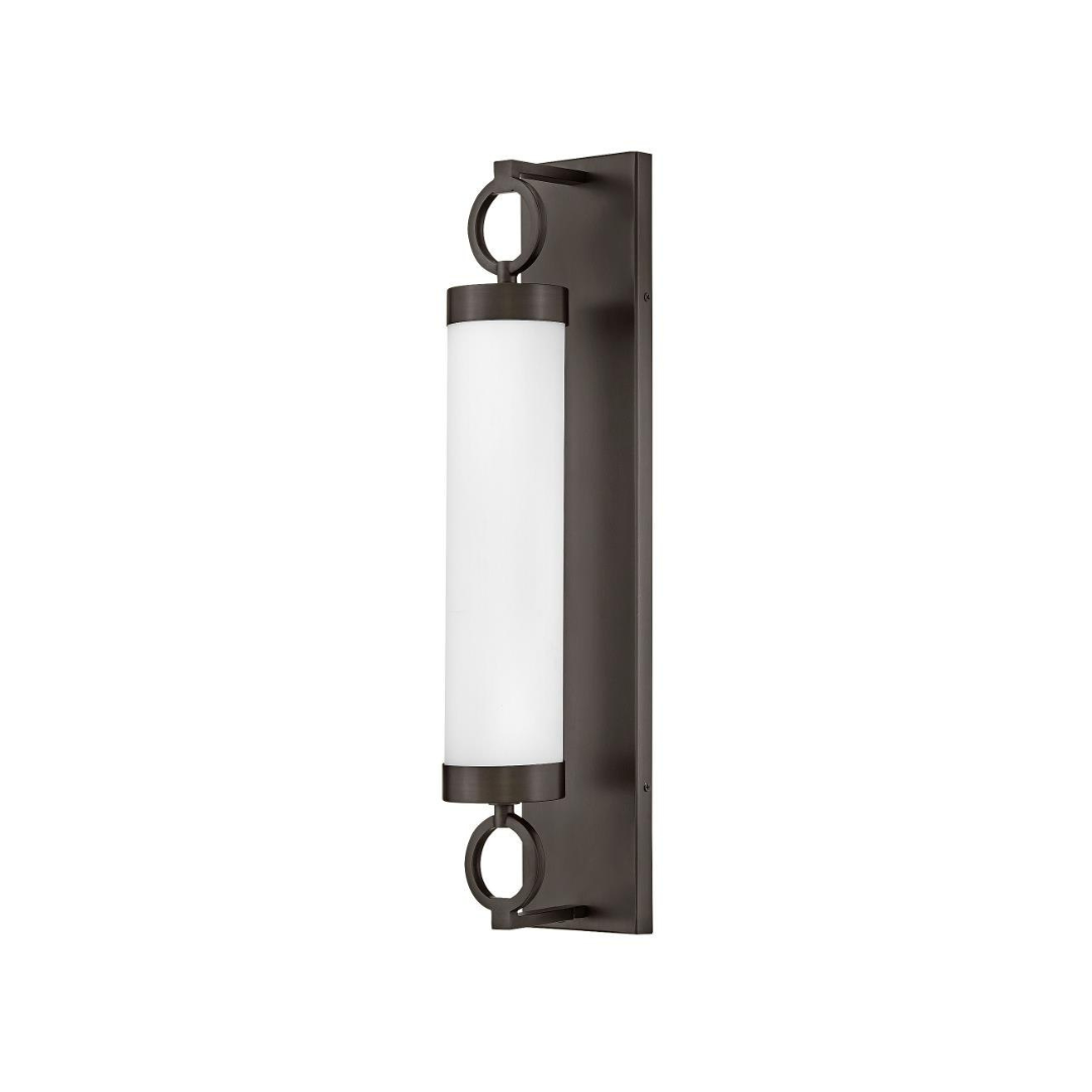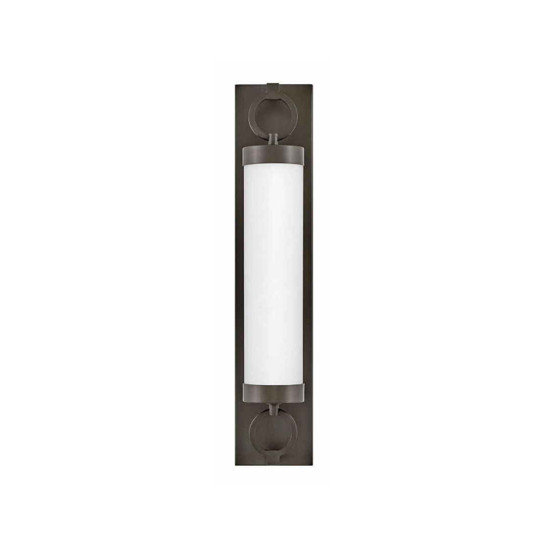 For a fixture that is an industrial piece of art, look to Baylor. The sturdy back plate and decorative rings add a nice balance to the etched opal glass to finish off the strong, substantial look. Ideal for providing plenty of functional light, Baylor mounts cleanly to the wall vertically or horizontally to bring style to primary bath, powder rooms, and more