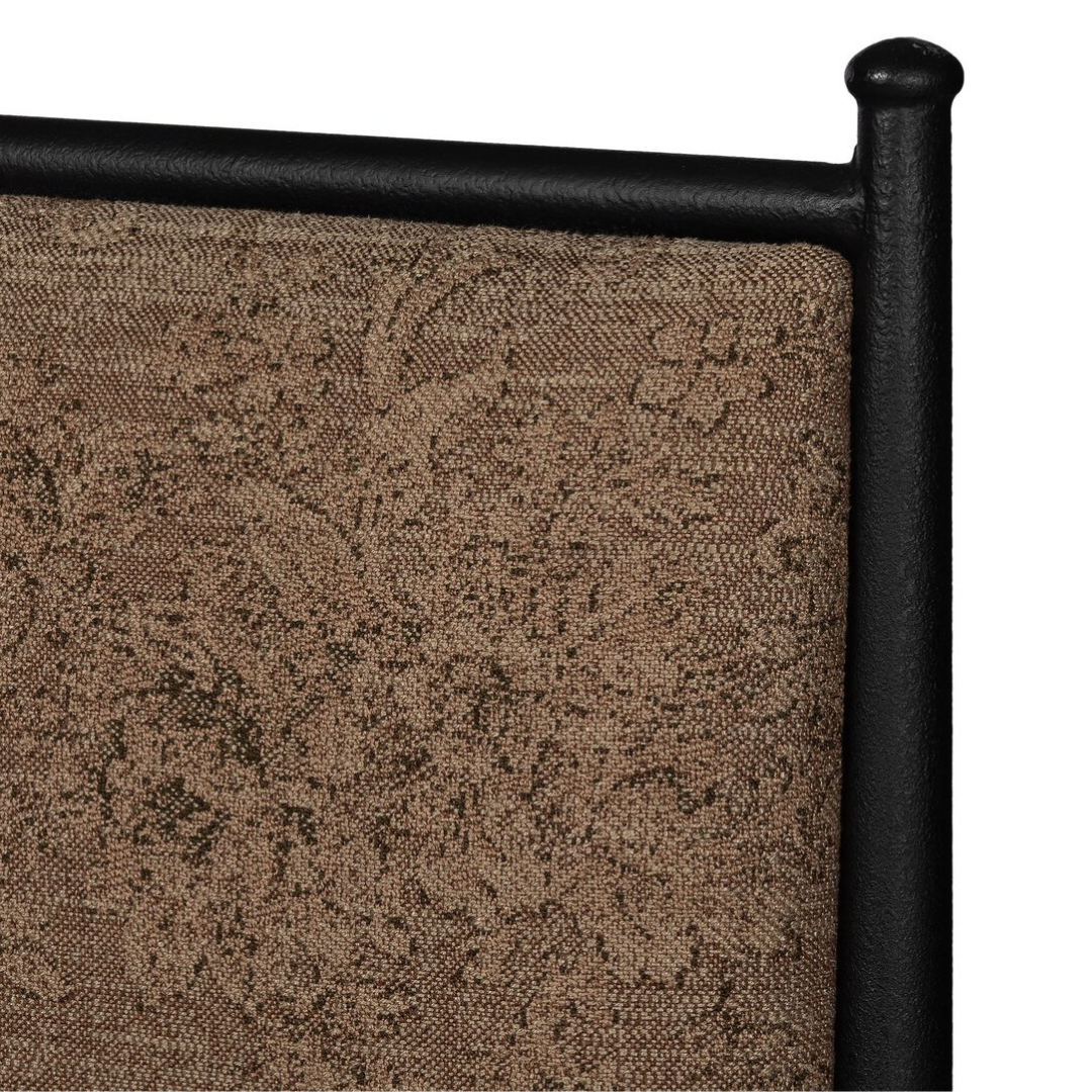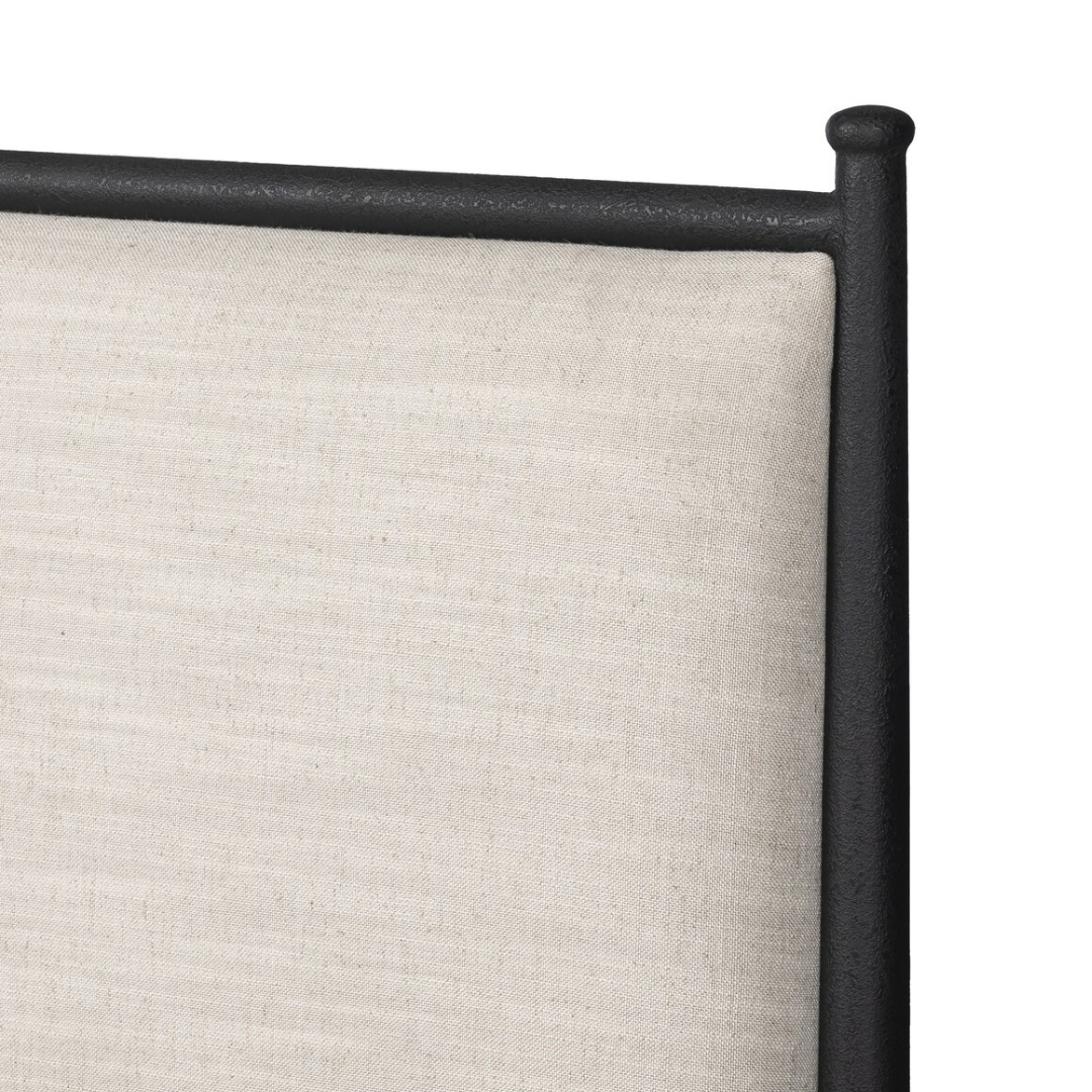 Crafted from textured black iron, this bed frame features soft tapered legs, each topped with a rounded ball detail.
