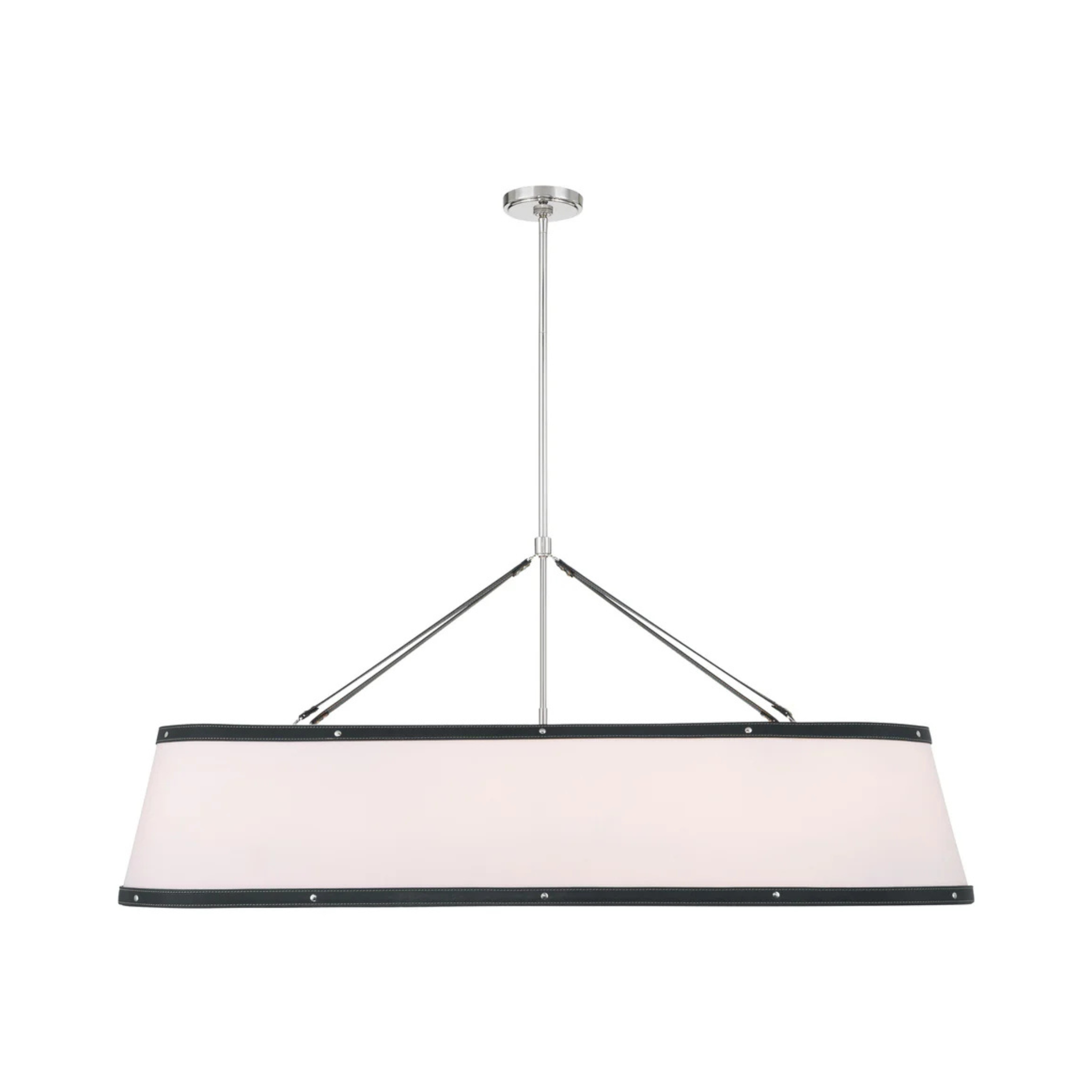 - The Callahan collection designed by Libby Langdon, features a textural linen shade accented with a refined vegan leather trim that connects like a belt buckle. Its sleek, transitional design offers elegant lines and timeless details, making it a versatile and stylish choice for any space.
