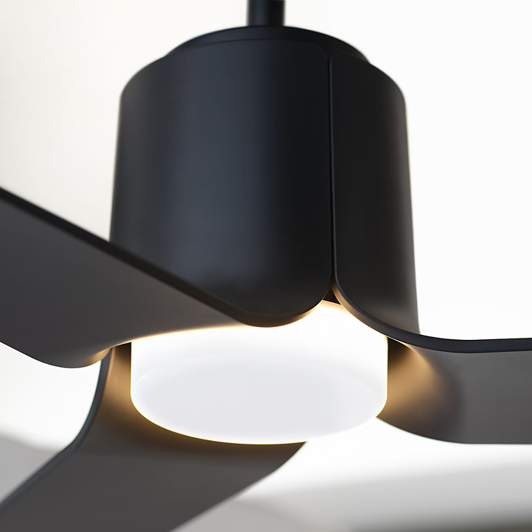 The Peel Smart LED fan by Peter Bristol embodies its name with blades that seamlessly expand from the fan's housing, creating a clean finish. The simple LED light, like the center of a flower, peeks out gently from inside. Peel is damp-rated for indoor and outdoor use and controlled via 6-speed remote control or via your smart home system or mobile phone using the Bond Home App.