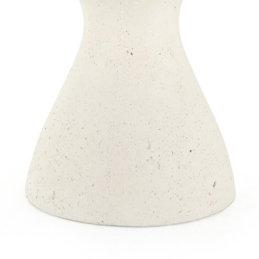 Smooth concrete is shaped into a durable, eye-catching outdoor end table. Its natural texture brings extra dimension and character to each piece. Cover or store inside during inclement weather and when not in use.