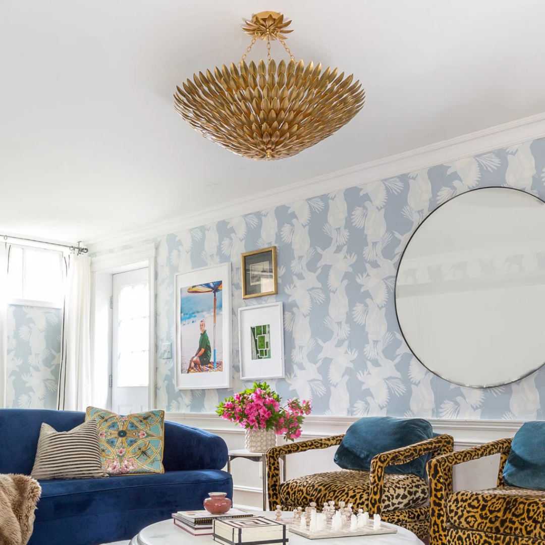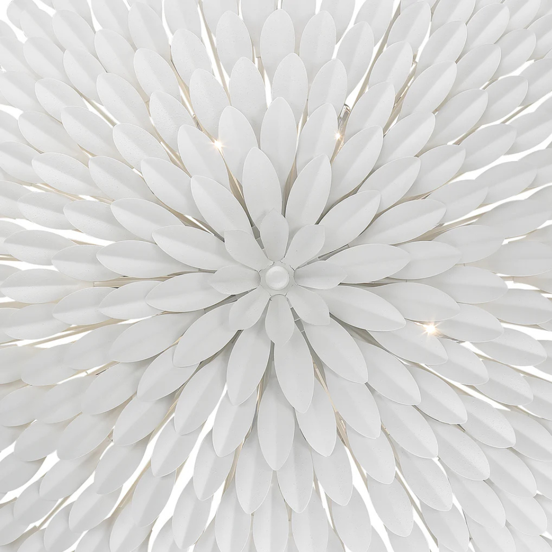 • The intricately crafted, hand-painted frame with layered leaves offers versatile installation as a chandelier or ceiling mount.