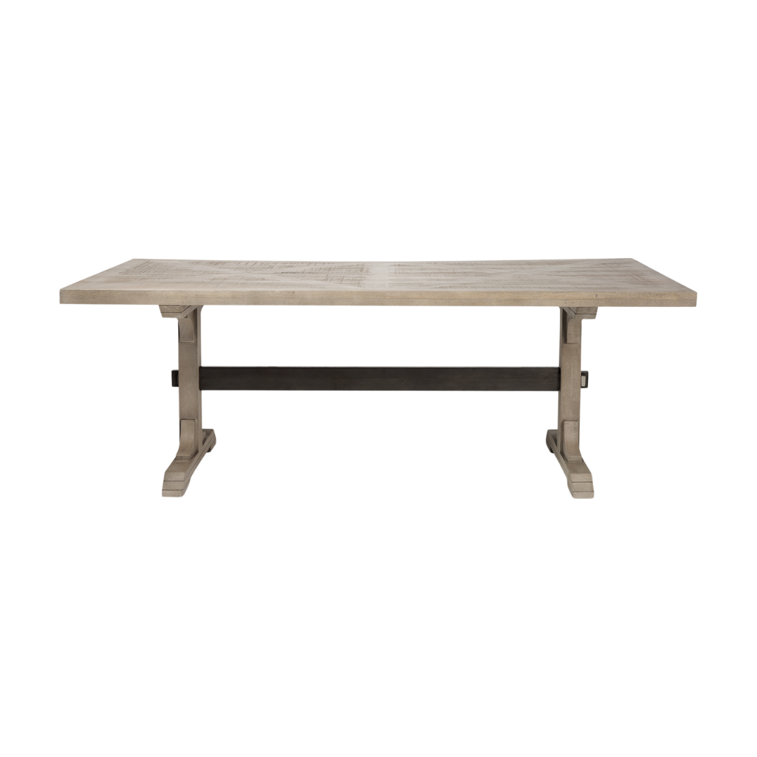 The Barrett Rectangular is an 84" dining table that entertains 6 comfortably. It is made from premium Indian mango wood, finished in a light brown polish to showcase the grains, knots, and character of the wood. Its rectangular top is supported by a sturdy trestle style base. The Barrett looks stunning in a chic-farmhouse environment.