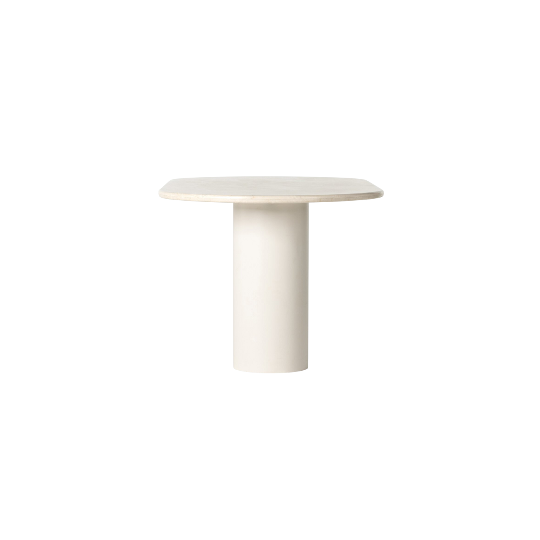 Simply sophisticated. A spacious oval-shaped table inspired by 1970s Italian design, an iron base supports a rounded tabletop of solid marble, for a fresh, monochromatic look that pairs with just about anything. Seats six comfortably.