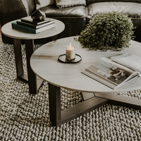 There's been no better pairing since wine and cheese. With a solid Satwaria marble tabletop and solid acacia base, the Juno Coffee Table showcases the best of nature's work effortlessly. Jinxx’s Satwaria marble is heavily veined with darker grey and charcoal striations, resulting in an attractive off-white tone. Please note that due to the natural variances in marble, each table will vary in tone & vein markings.
