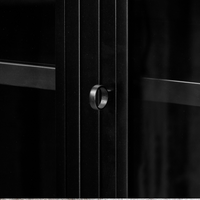 This simple stunner exudes subtle luxury. Crafted entirely from iron in a matte black finish. A wide glass-paneled door brings displayed items into focus.