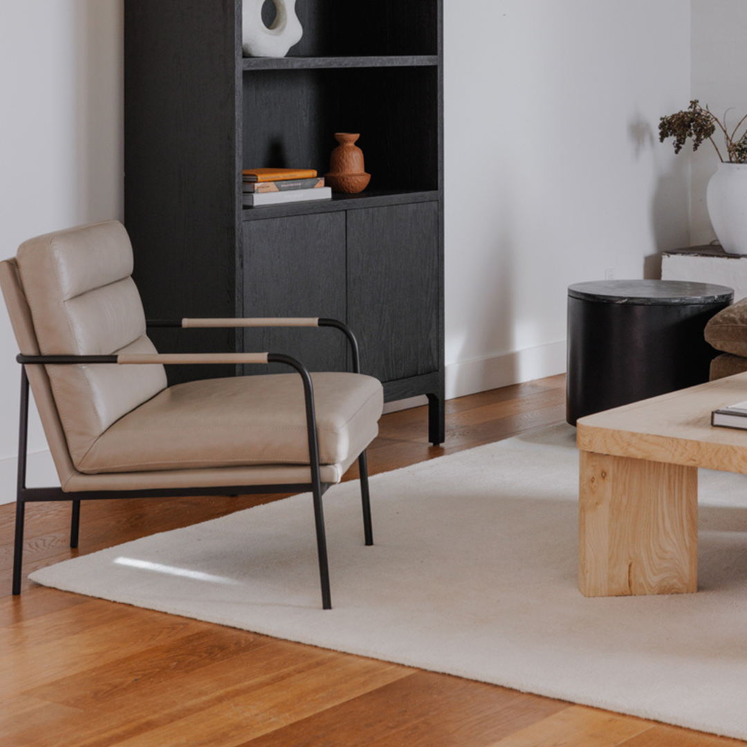 MATERIALS // 100% TOP GRAIN LEATHER, POWDER-COATED METAL FRAME, ZIGZAG SPRING SUPPORT, FOAM CUSHIONS