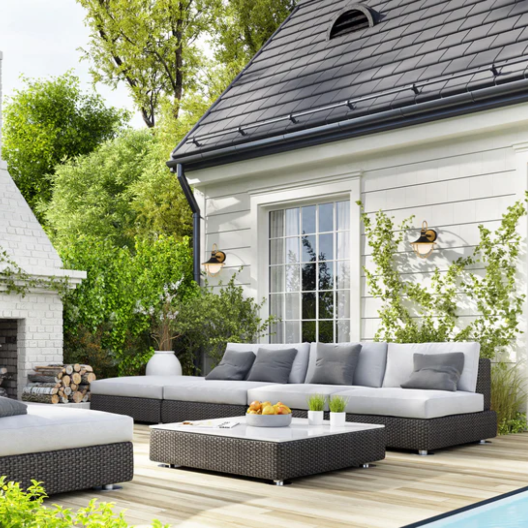 - The dark smoky tones of the graphite finish mixed with the gold accent gives your outdoor setting an extraordinary look.