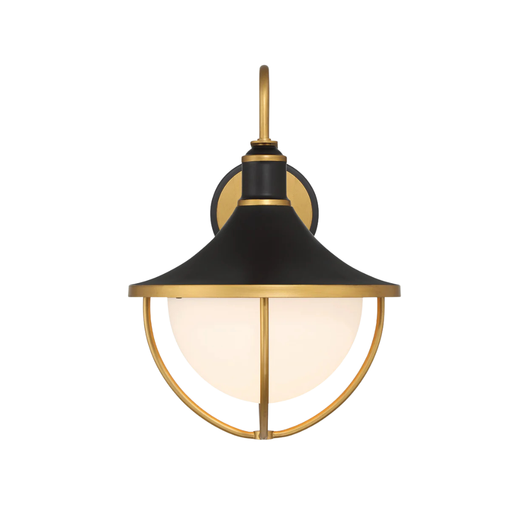 - The Atlas Outdoor Collection effortlessly elevates your home's exterior with a perfect blend of modern aesthetics and classic charm. This collection features white glass with a two-tone matte black and gold finish, delivering a premium look that enhances your home's curb appeal. The bowl-shaped white glass body, crowned by an inclined metal structure, creates a balance of form and function. Gold-arched rods gracefully contrast against the pristine white glass, adding a touch of sophistication to your outdoor spaces.