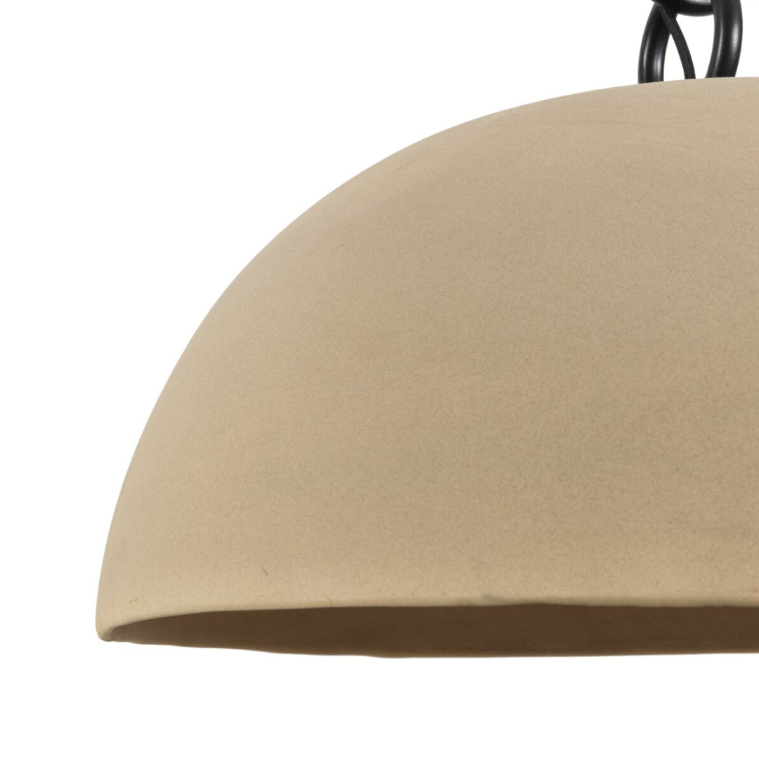 An oversized dome with a speckled glossy finish hangs from overscale chain links for impact. Links are removable to adjust the length.