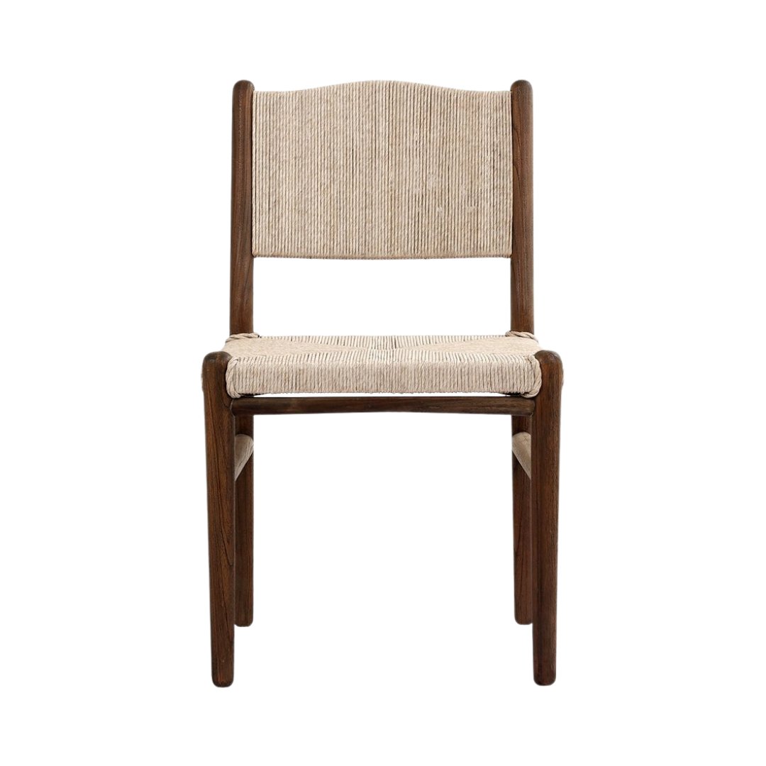 Shaker inspiration. Brown wood frames the woven seat and back of this outdoor dining chair. Cover or store indoors during inclement weather and when not in use.