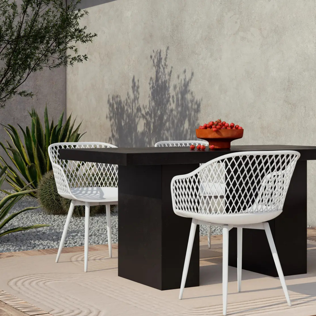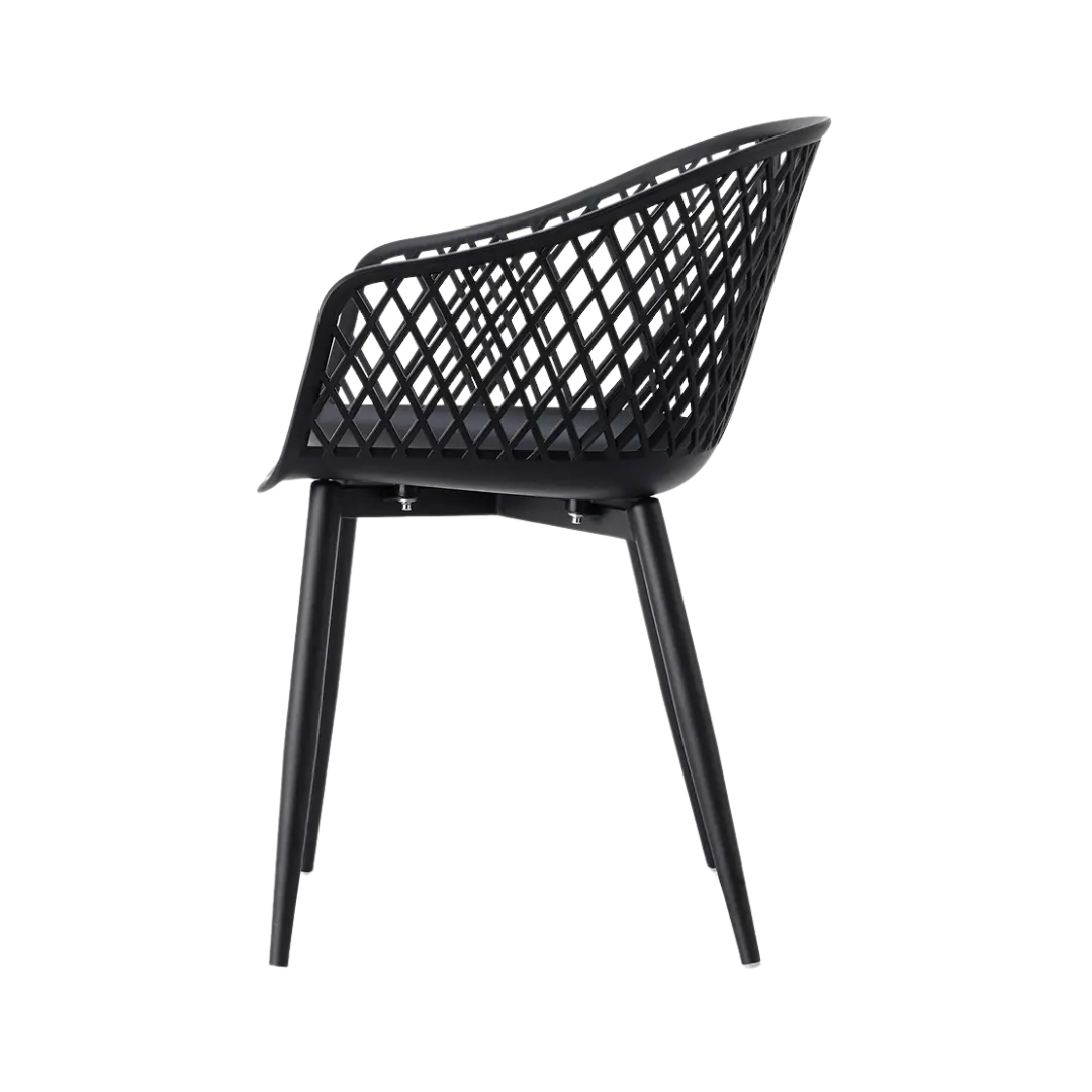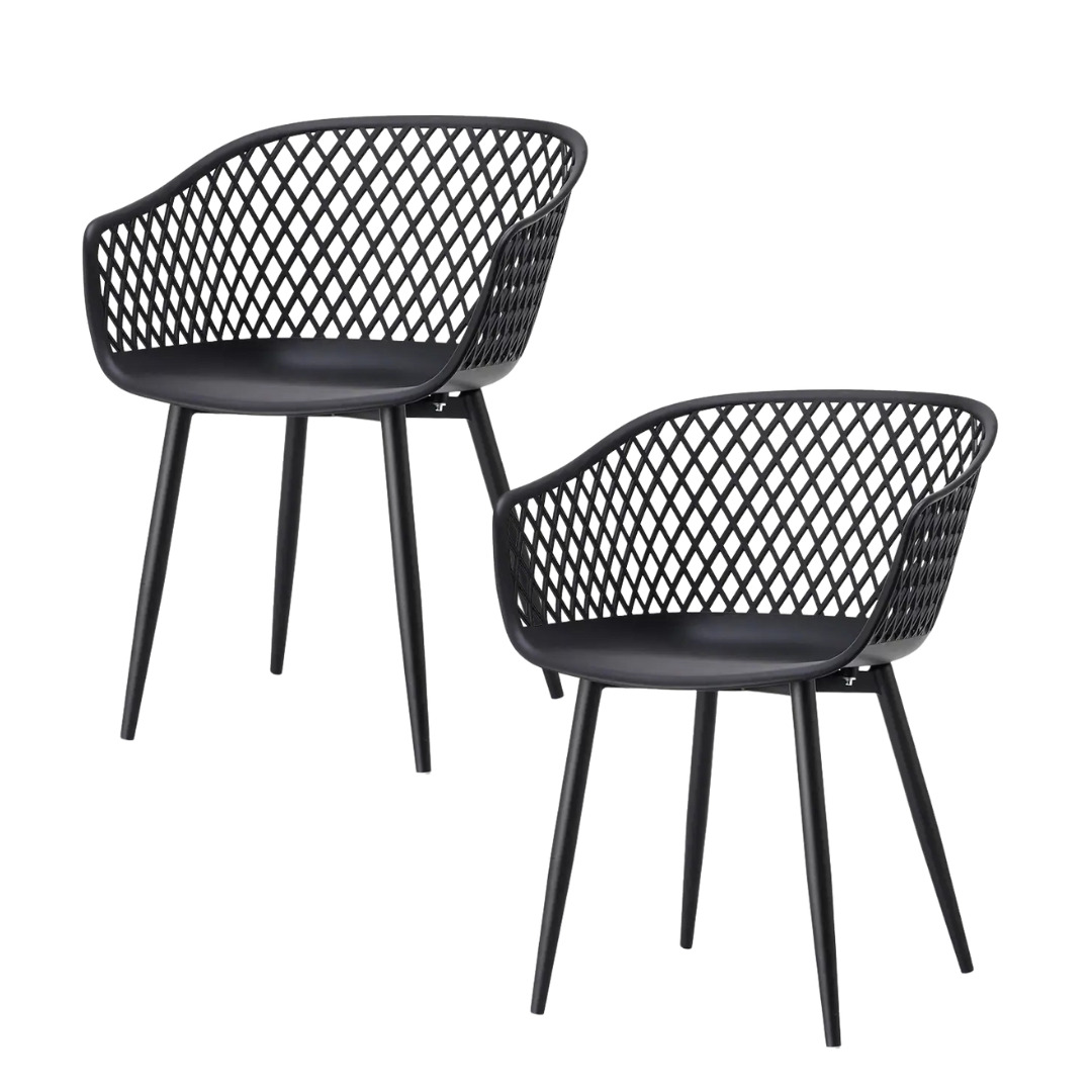 The Paige Chair combines comfort, durability, and modern style for indoor or outdoor use. Crafted from durable polypropylene with a woven-look backing, its curved silhouette offers ergonomic support while powder-coated metal legs provide stability. Versatile and lightweight, it’s ideal for dining or extra seating when guests arrive. Price is for a set of two chairs.