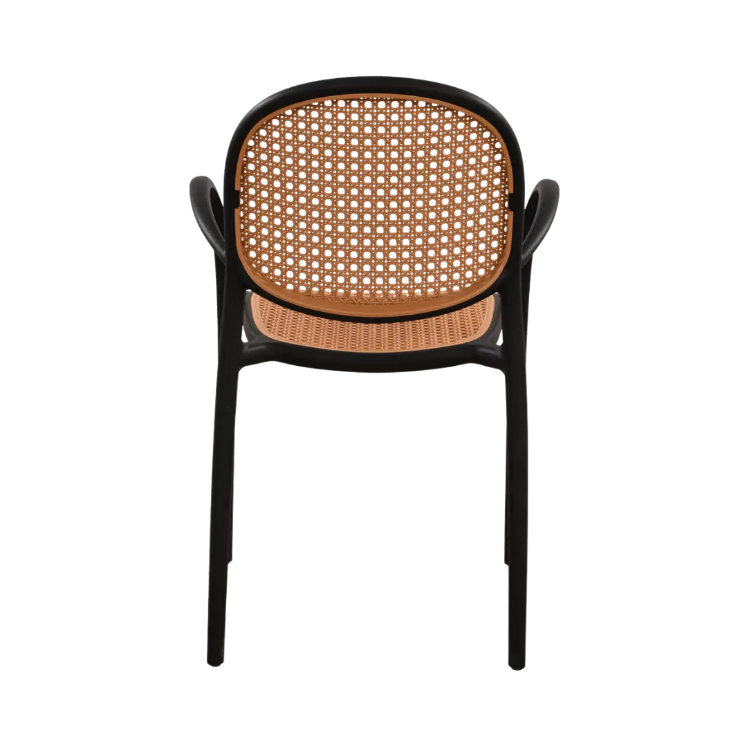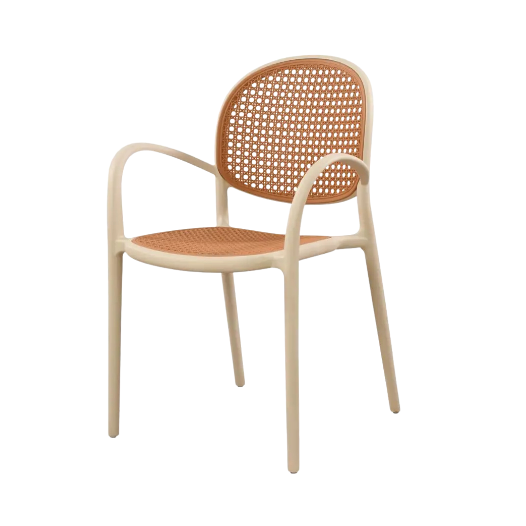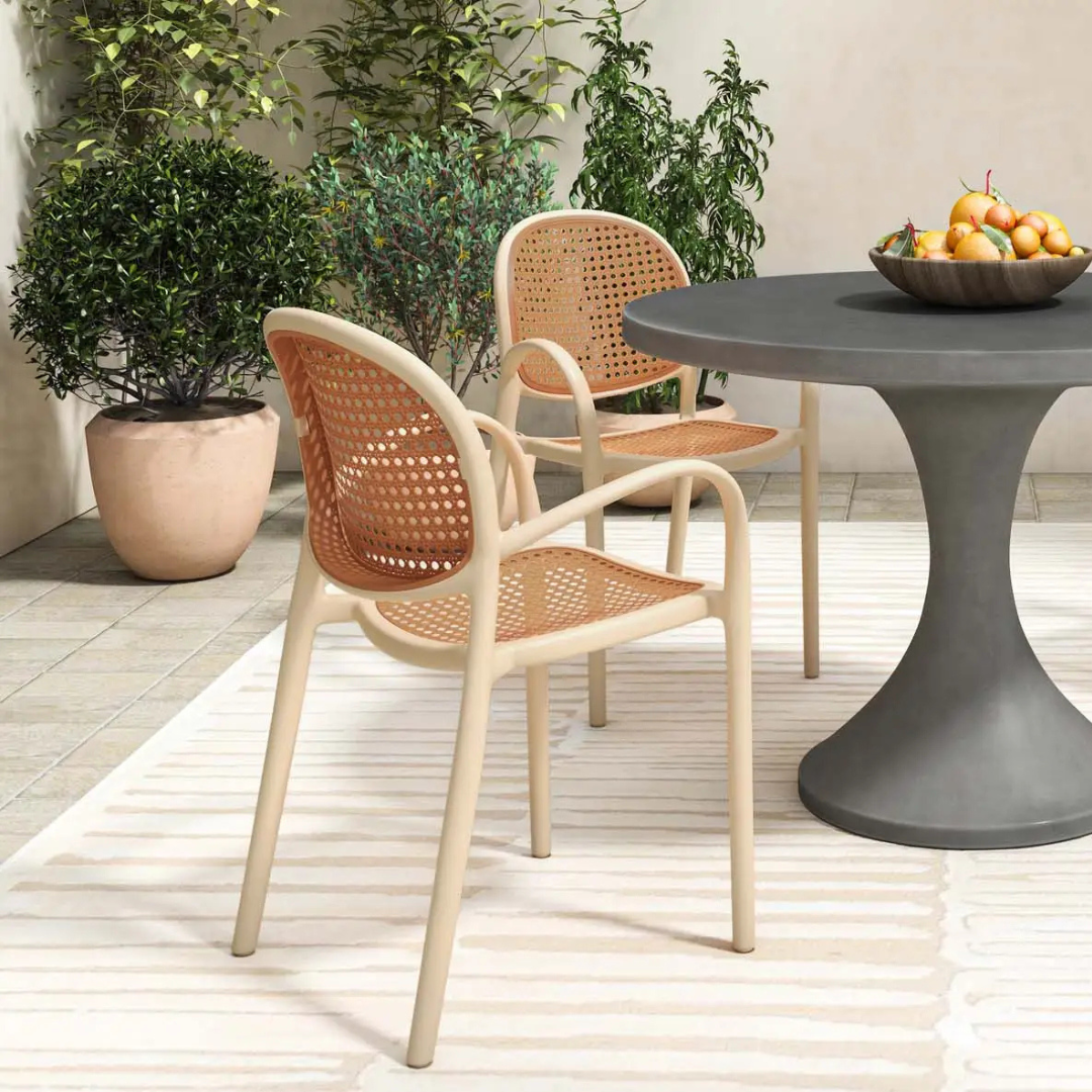The Simona dining chair marries form and function in understated elegance. Crafted from durable polypropylene, its intricately woven seat and back create a visual tapestry. Stackable and weather-resistant, these chairs effortlessly adapt to alfresco living with refined simplicity. Price is for a set of two chairs.