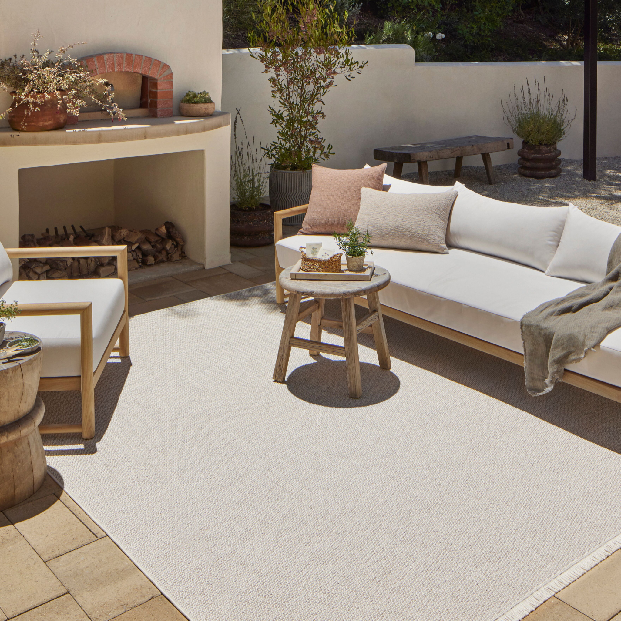 The Malibu Collection is an indoor/outdoor area rug by Amber Lewis x Loloi that channels the casual modern vibe of the beach city it's named after. The rug's neutral-toned geometric prints are easy to match with a range of decor styles, while a hint of fringe adds to the breezy aesthetic. This collection is power-loomed of 100% polypropylene that's made to resemble natural fibers, but which can withstand the outdoor elements and indoor high-traffic areas like mudrooms, playrooms, and hallways. Spot clean, vacuum, or hose off completely as needed. Made in Egypt and OEKO-TEX certified, ensuring its materials don't contain harmful substances.