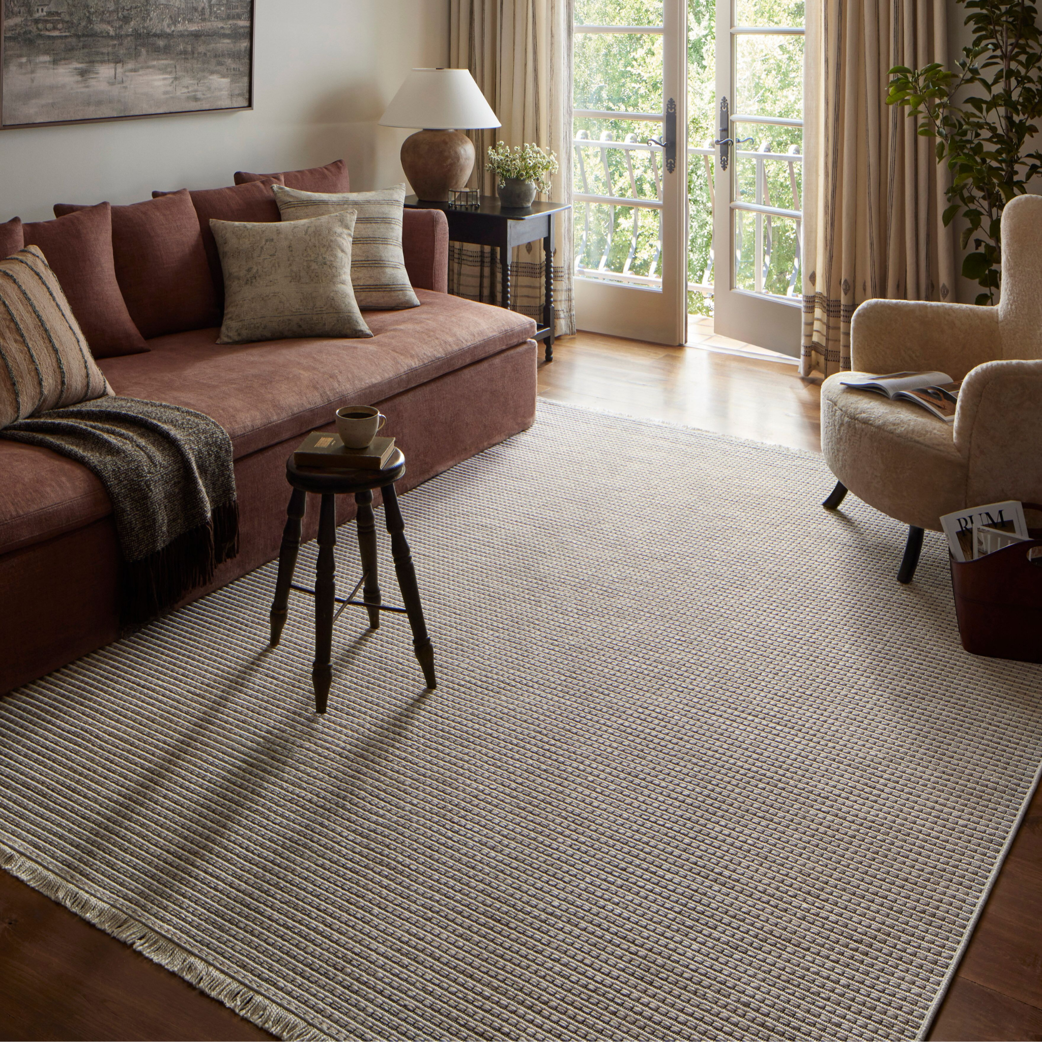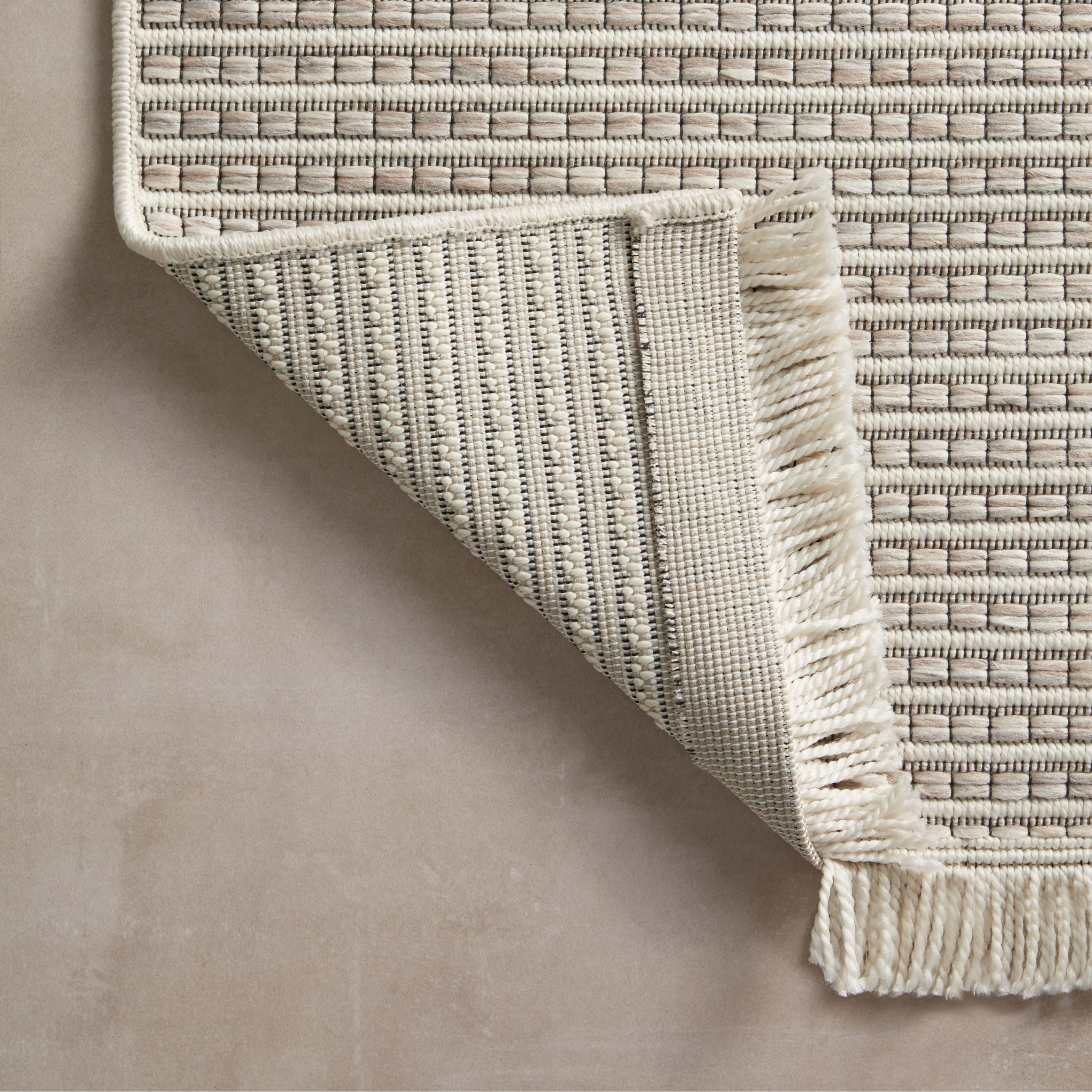 The Malibu Collection is an indoor/outdoor area rug by Amber Lewis x Loloi that channels the casual modern vibe of the beach city it's named after. The rug's neutral-toned geometric prints are easy to match with a range of decor styles, while a hint of fringe adds to the breezy aesthetic. This collection is power-loomed of 100% polypropylene that's made to resemble natural fibers, but which can withstand the outdoor elements and indoor high-traffic areas like mudrooms, playrooms, and hallways. Spot clean, vacuum, or hose off completely as needed. Made in Egypt and OEKO-TEX certified, ensuring its materials don't contain harmful substances.