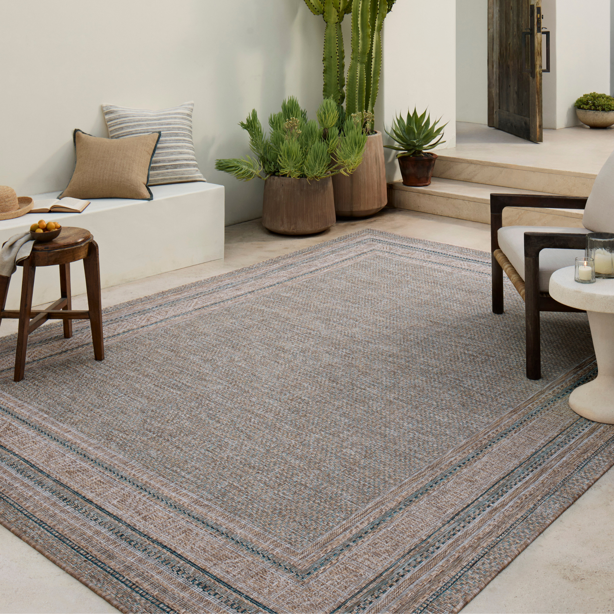 Inspired by the scenic mountain town in California, the Topanga Collection is an indoor/outdoor rug made of durable polypropylene that resembles natural fibers but is much more ready for sun, rain, and high-traffic use. The rug's modern construction also makes it easy to clean (just hose off and air dry), whether it's styled in a dining room, mudroom, or backyard patio.Classic geometric motifs bring a subtle pop of pattern to this sophisticated, neutral design by the celebrated interior designer Amber Lewis, made in collaboration with Loloi. This collection is OEKO-TEX certified, ensuring its materials don't contain harmful substances.