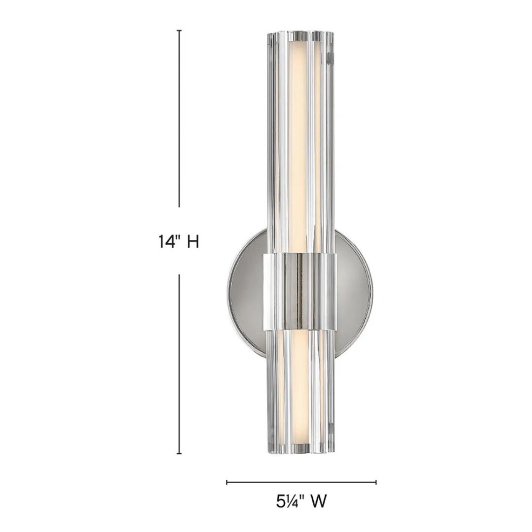 Georgette’s sophisticated silhouette is enhanced by clear fluted crystal, creating a stunning fixture with bold symmetry and captivating details. A chic central cuff and back plate provide balance and contrast that effortlessly complements any space with a Black Oxide, Lacquered Brass or Polished Nickel, finish.