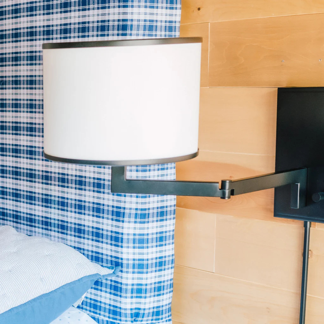 • The functional and fashionable Madison task light is versatile enough to fit into any interior. Stylish, modern and minimal, the fixture features a white fabric shade and square beveled backplate, powered by a dimmable switch to adjust brightness and can be hardwired or plugged into your outlet. Designed to direct light where you need it most, this fixture is both sleek and contemporary, allowing its design to be incorporated easily into any home decor.
