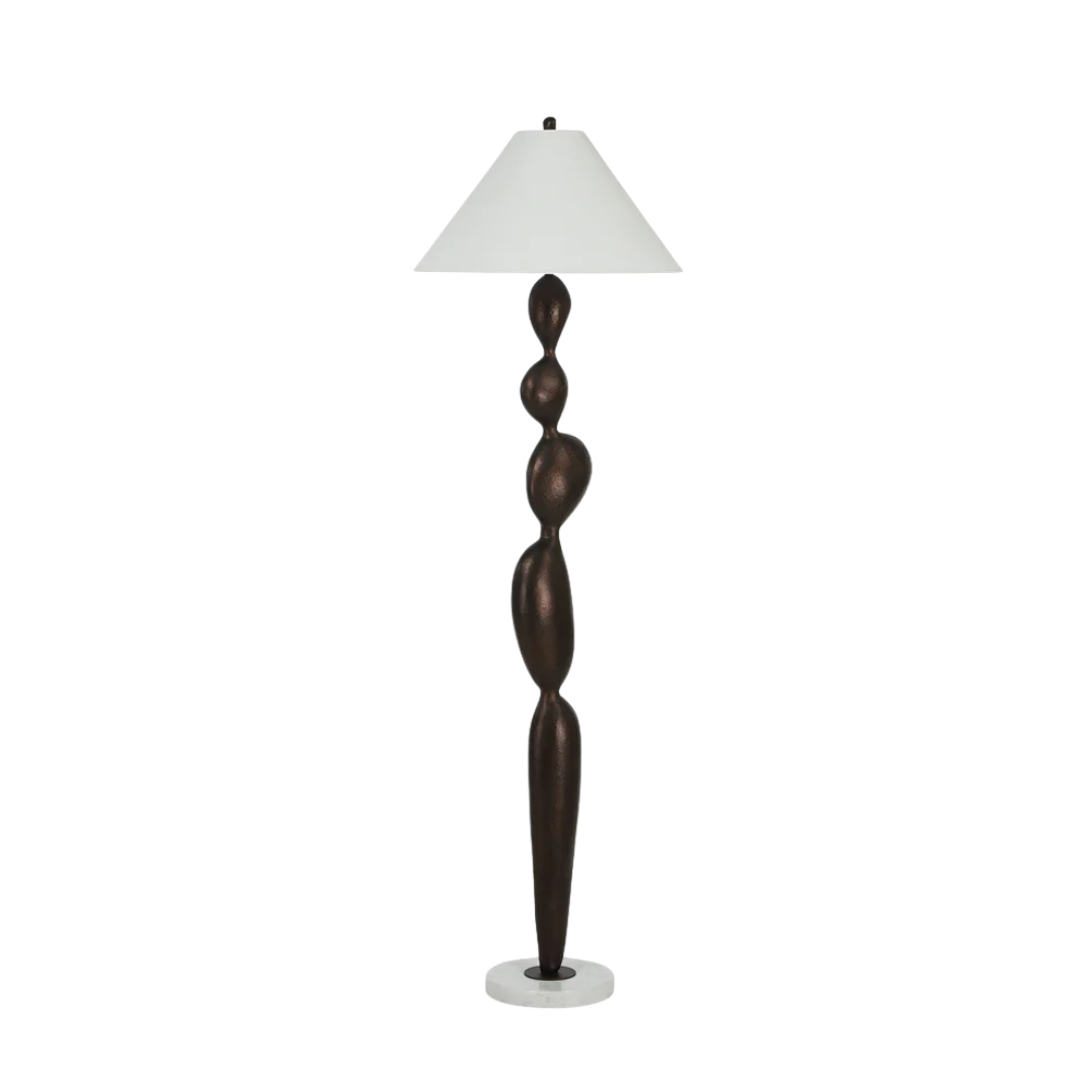The Elodie floor lamp blends sculptural elegance with a warm, inviting glow. Its matte bronze body and soft linen shade create a timeless presence, while a three-way switch lets you set the perfect light. A striking yet cozy addition, it transforms living rooms, bedrooms, or reading nooks into spaces that feel effortlessly refined.